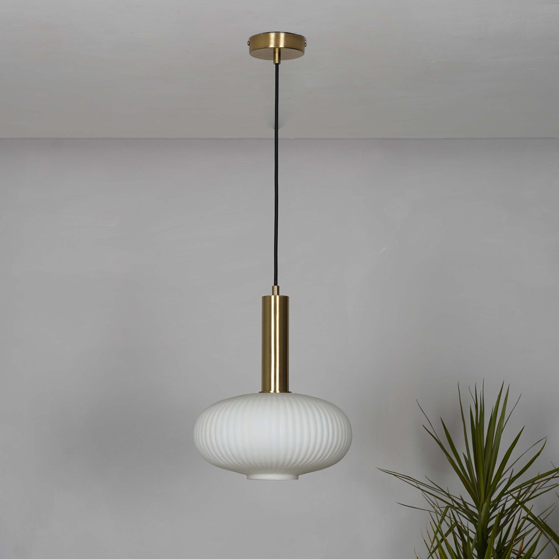 Maloto Amber Luster and Brass Hanging Light Complement your game room or breakfast nook with this pendant light. This pendant Amber Luster shades and vintage-style bulbs give them a charming retro edge, while their halogen- and LED-compatible design offers modern energy efficiency. Dome-shaped shades deliver focused downlight illumination, making these lights ideal for your table or workspace.