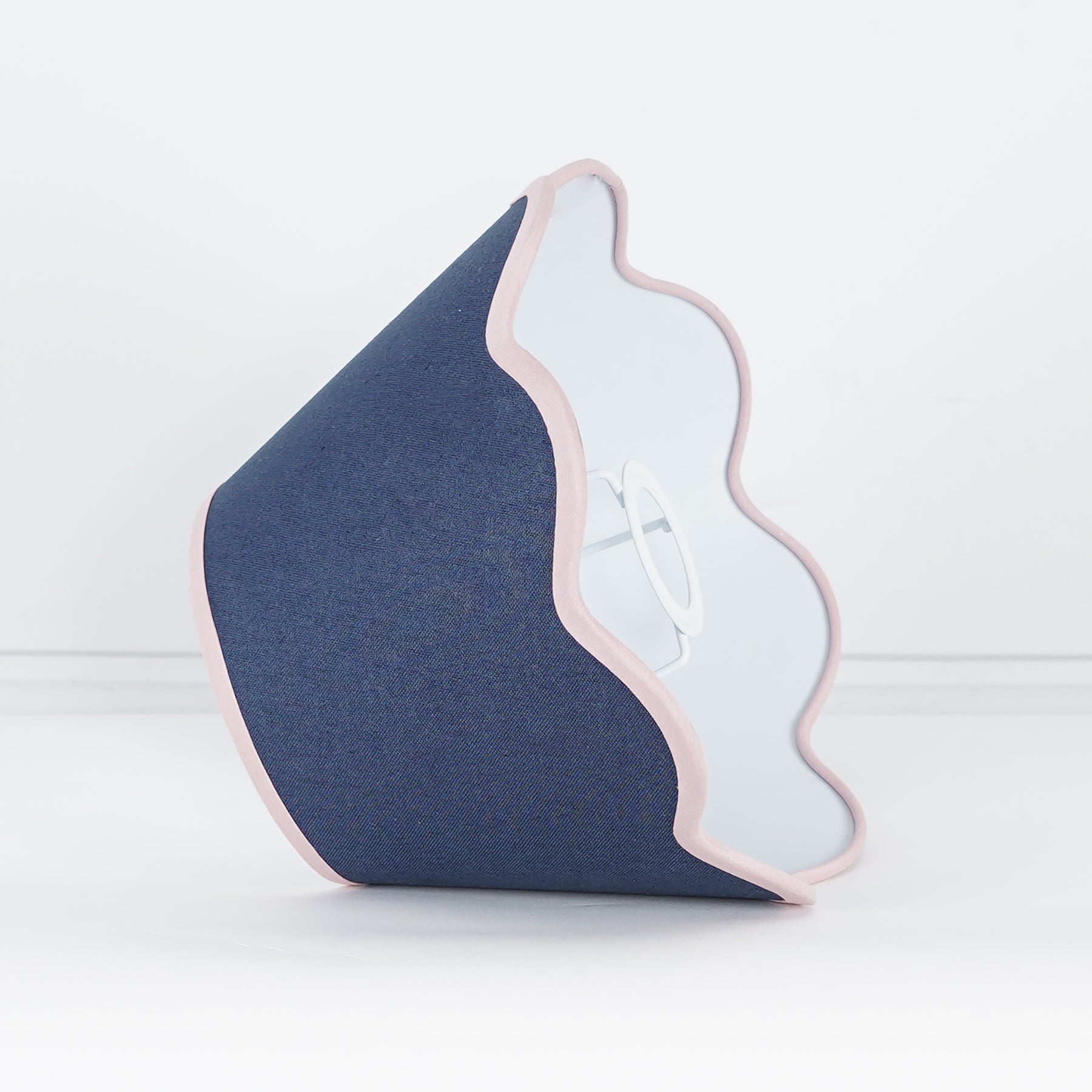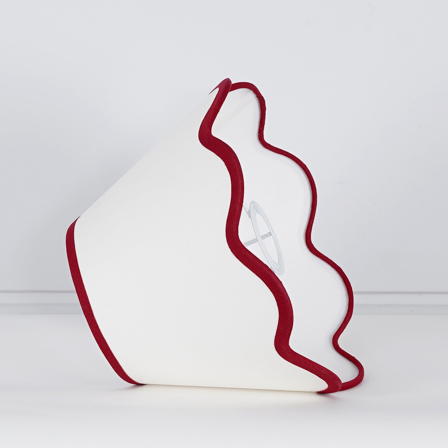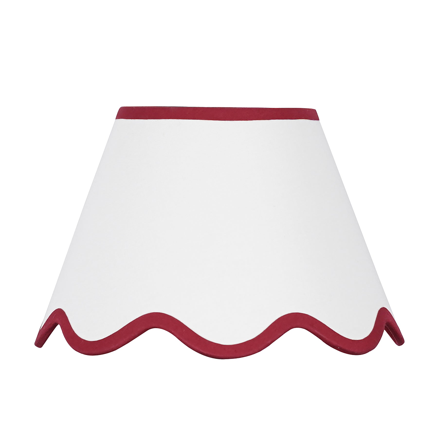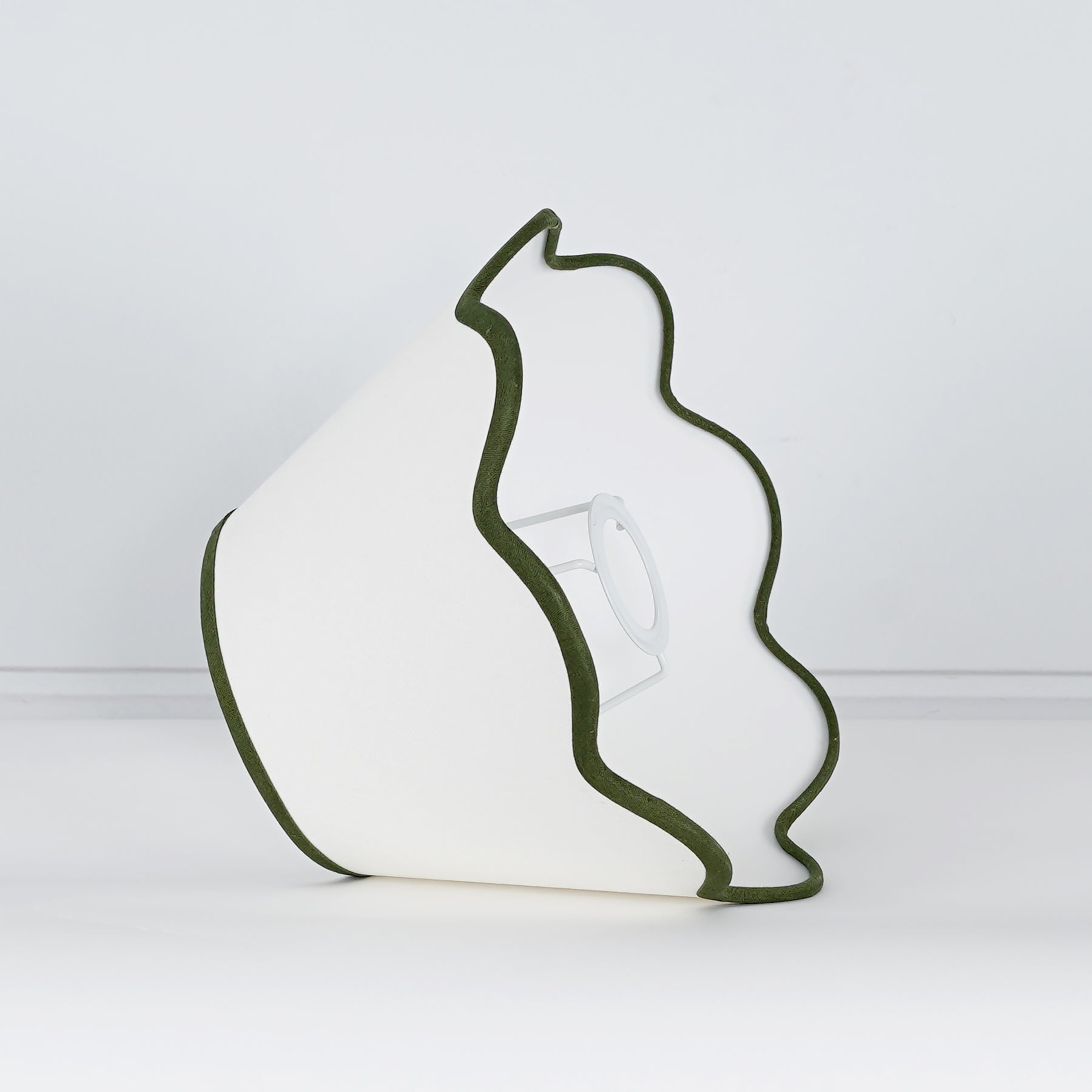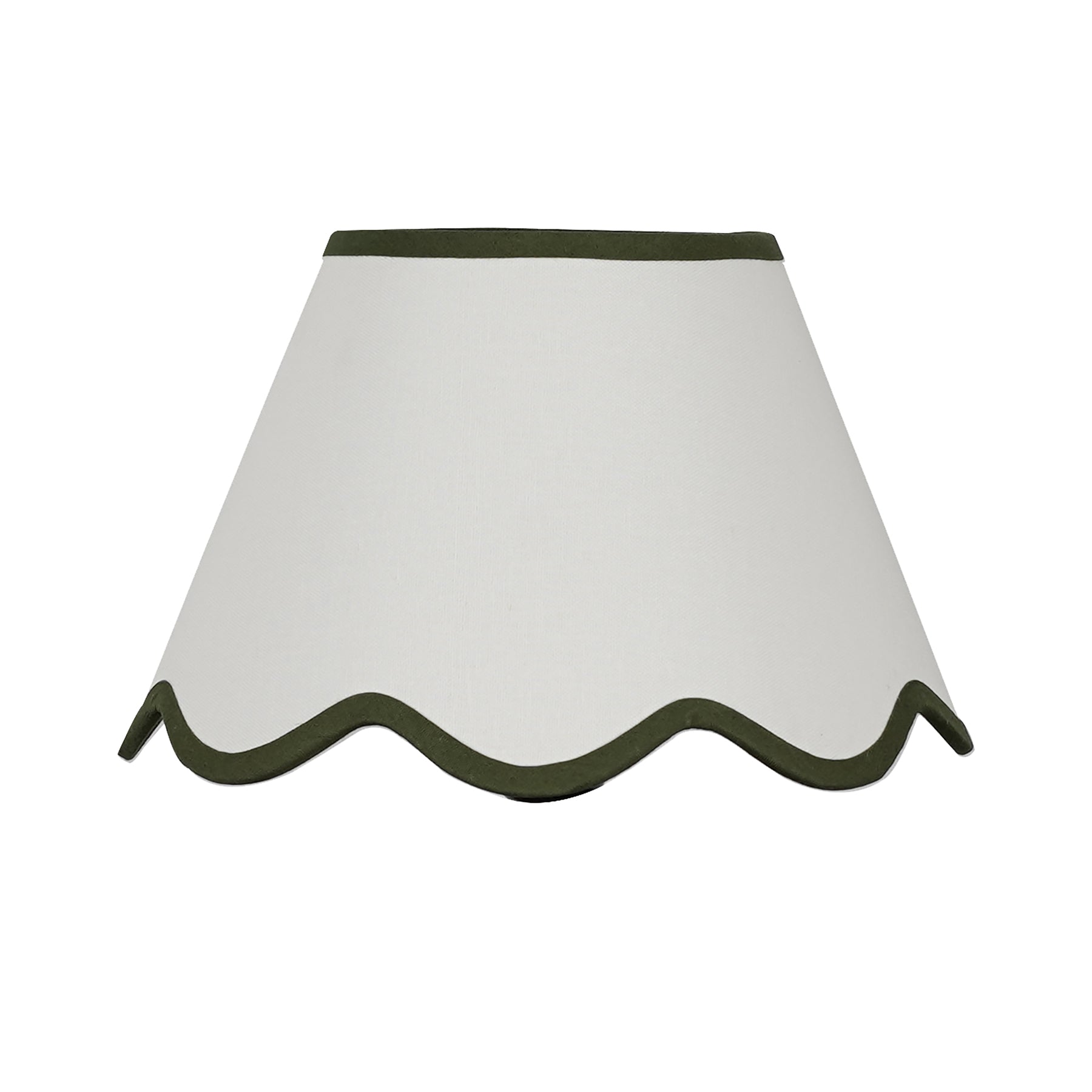 Cotton Fabric, a sophisticated choice to enhance your lighting fixtures with a blend of elegance and contemporary style. Crafted from premium linen PB off white cotton fabric, this shade features a distinctive hard scalloped design accented with green piping on both the top and bottom edges. Versatile and eye-catching, this shade is designed to complement various lighting installations including table lamps, wall lights, and pendant fixtures. The off white color of the fabric provides a neutral backdrop that seamlessly integrates with any interior decor, while the green piping adds a pop of color and a touch of sophistication.
