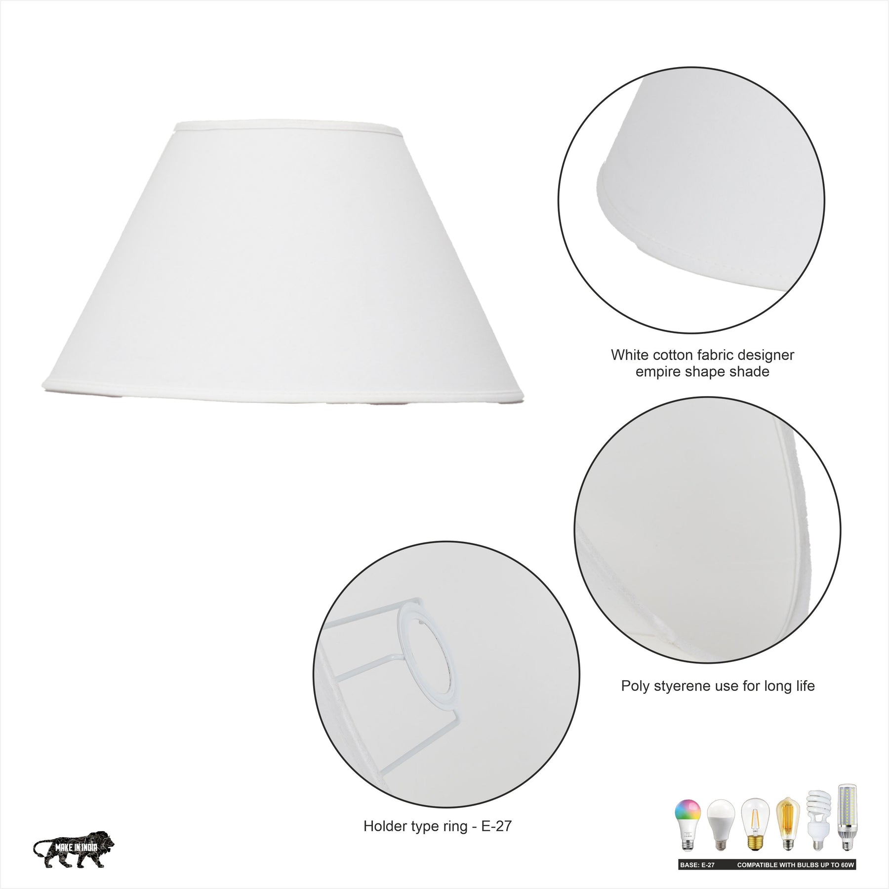 Elevate your professional space with our White Cotton Empire Solid Lampshade – 35 cm. Crafted from high-quality cotton, this sleek and sophisticated lampshade exudes an air of confidence and elegance. Its timeless empire shape effortlessly complements any professional setting, while the solid white color adds a touch of sophistication. Illuminate your workspace with style and make a statement that reflects your professionalism.