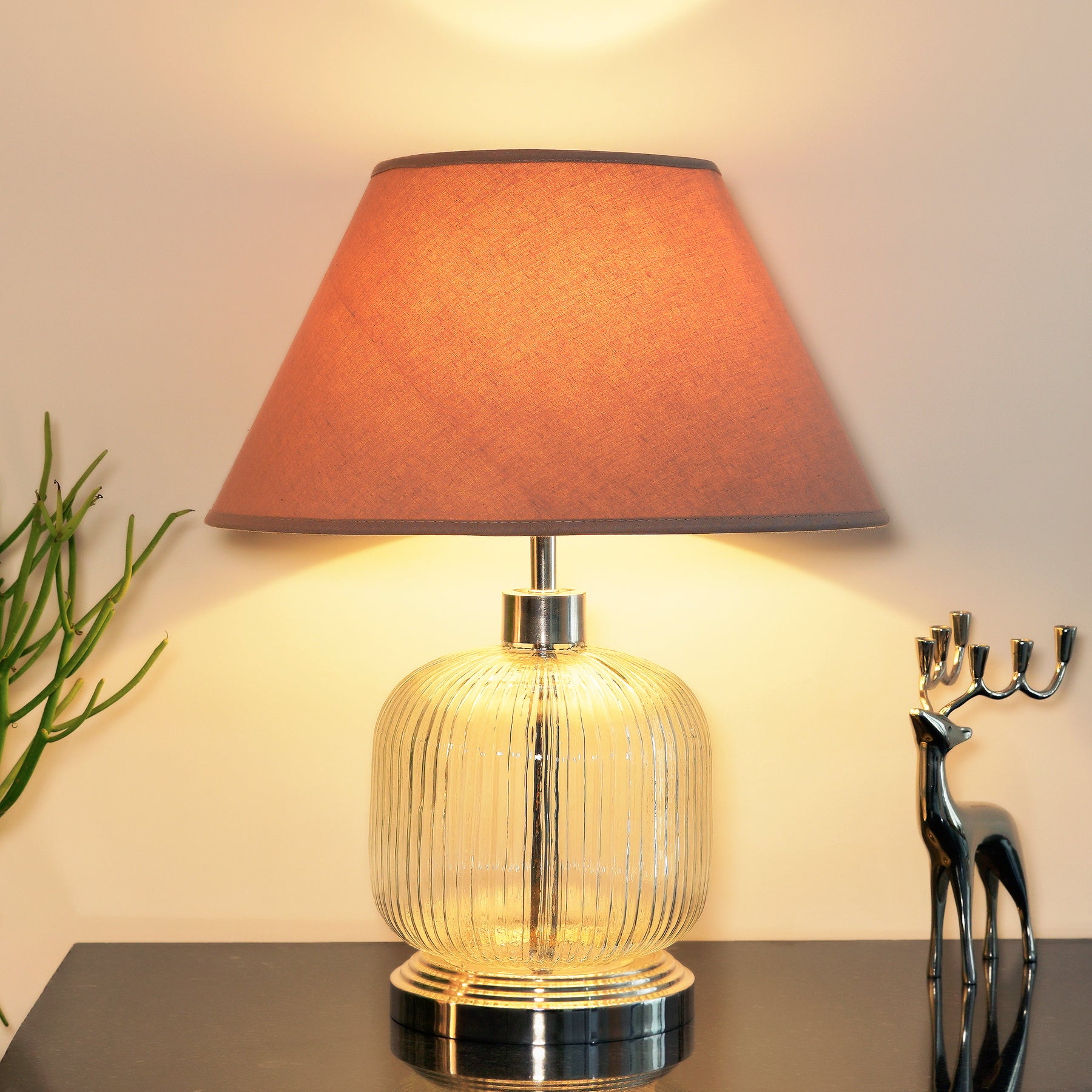 DEMARIUS Transparent and Nickel Finish Table Lamp With Cotton Shade
