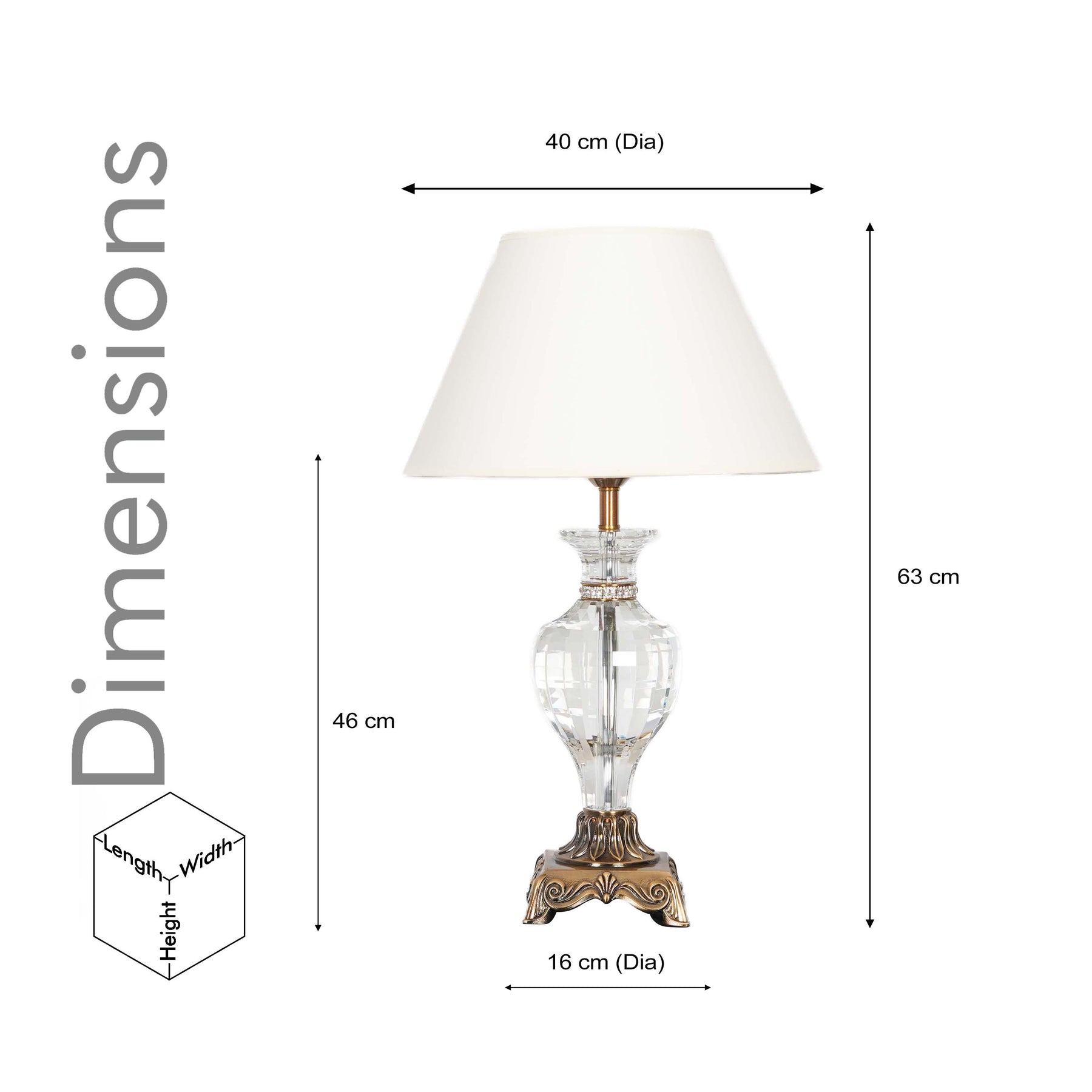 | Product Dimensions | Overall Dimensions – Height: 63 cm Length: 40 cm Width: 40 cm Base Dimension- Height: 46 cm Diameter: 16 cm |