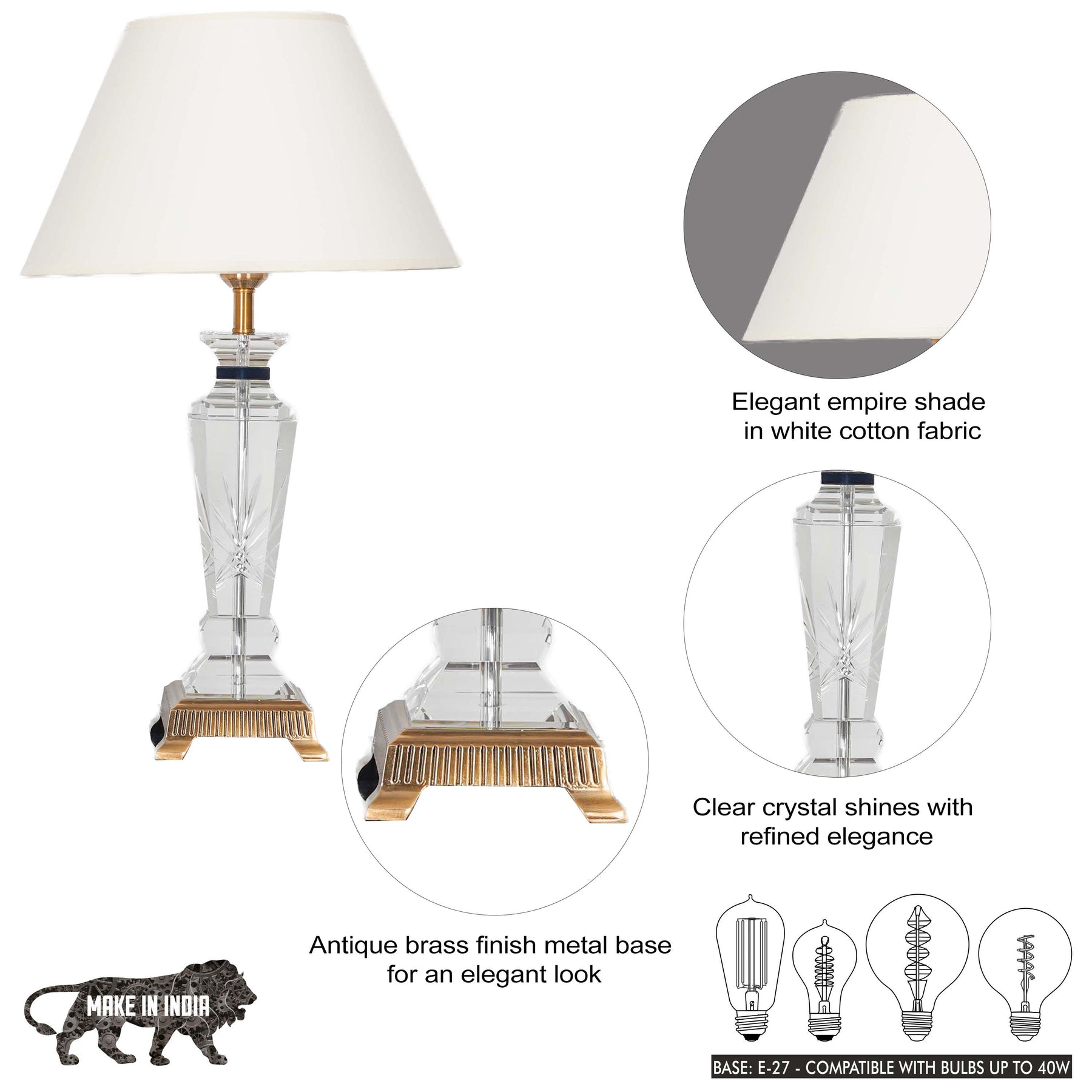 JURA Clear Crystal With Antique Brass Finish Table Lamp With White Cotton Shade