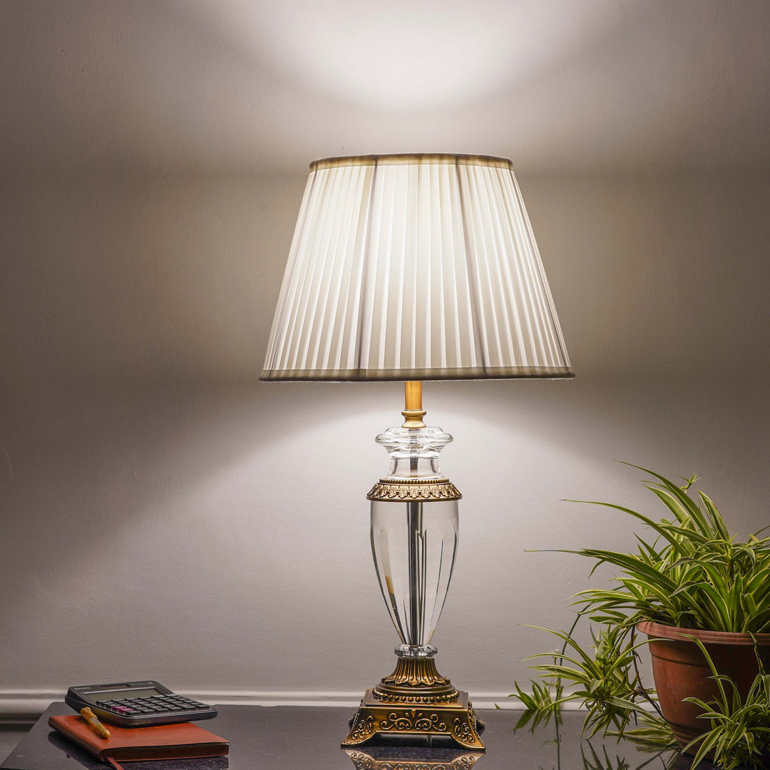 LENA Trophy Shaped Clear Crystal Table Lamp With White Cotton Shade