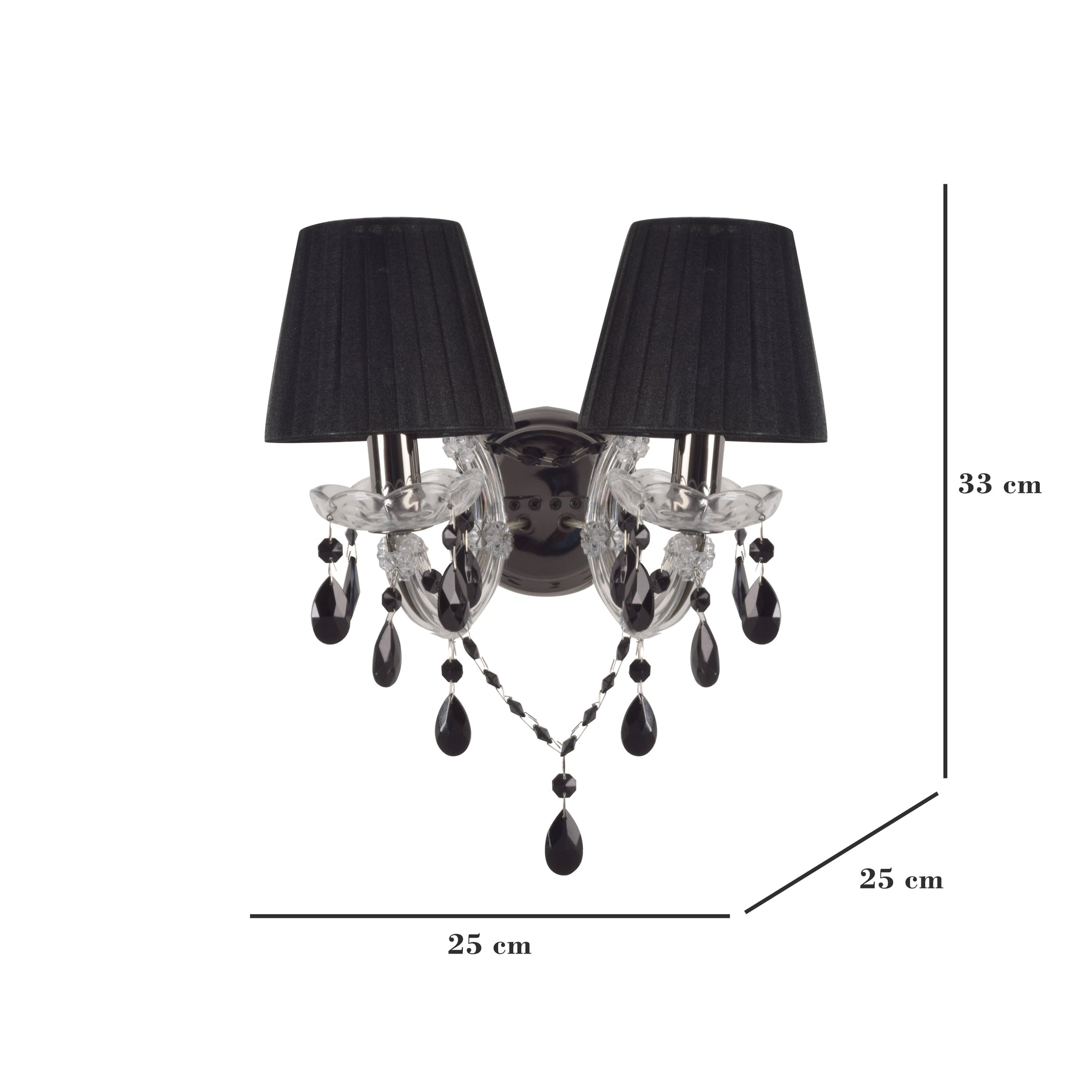 Enhance your interiors with the elegant charm of the Crystorama Black Fabric Shade with Crystal Double Wall Light. Designed to bring a perfect balance of sophistication and modern luxury, this wall light features a sleek black fabric shade complemented by beautifully crafted smoke crystal accents.