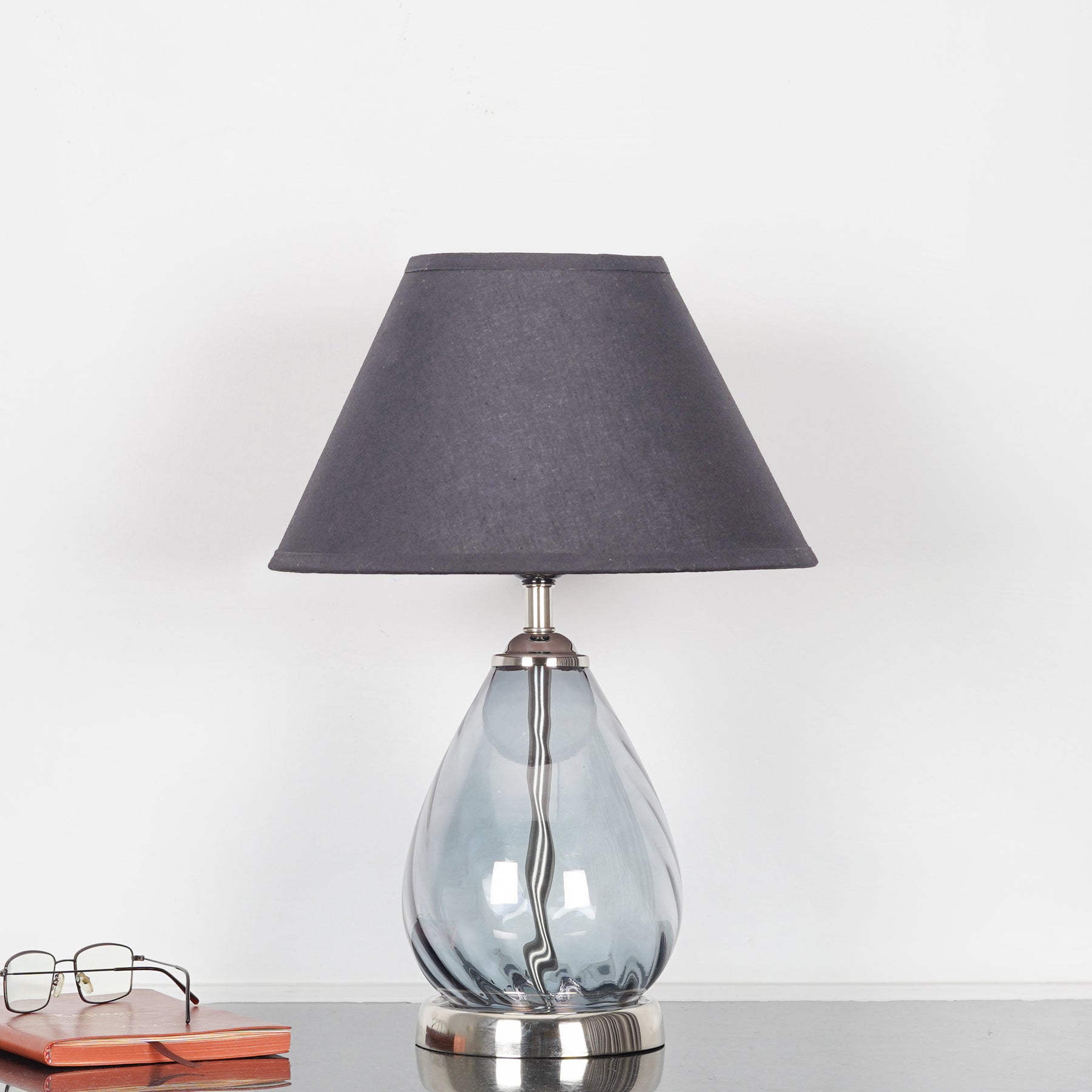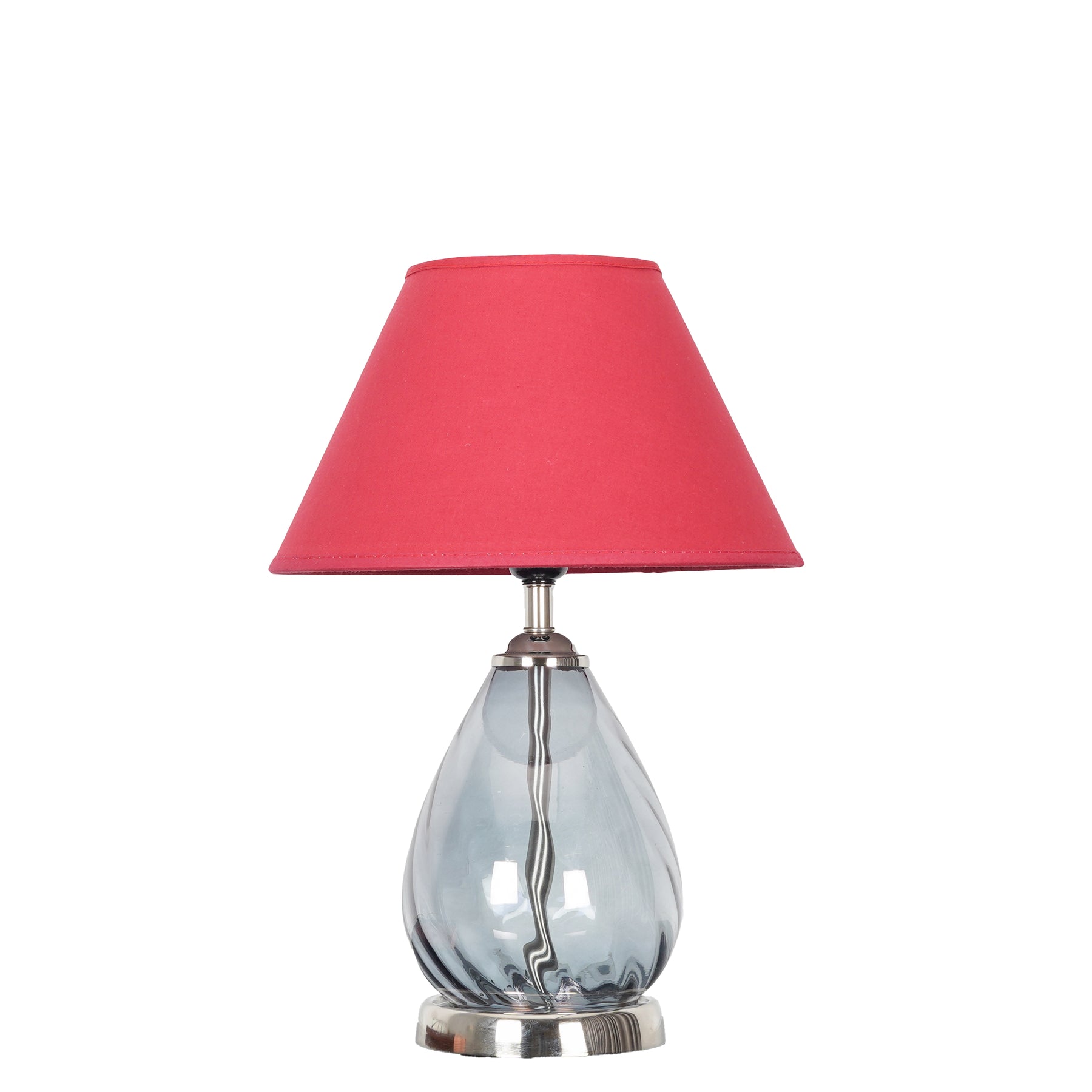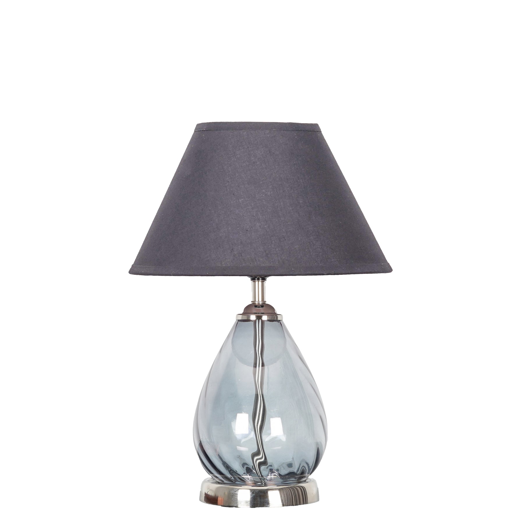 Bring sophistication and modern charm to your interiors with the DECADE Blue Glass and Nickel Finish Metal Table Lamp. This elegant table lamp features a sleek nickel-finish metal base paired with a striking blue glass body, creating a perfect balance of color and style. The beige cotton shade adds a soft, warm touch, diffusing light beautifully to create a cozy and inviting ambiance.