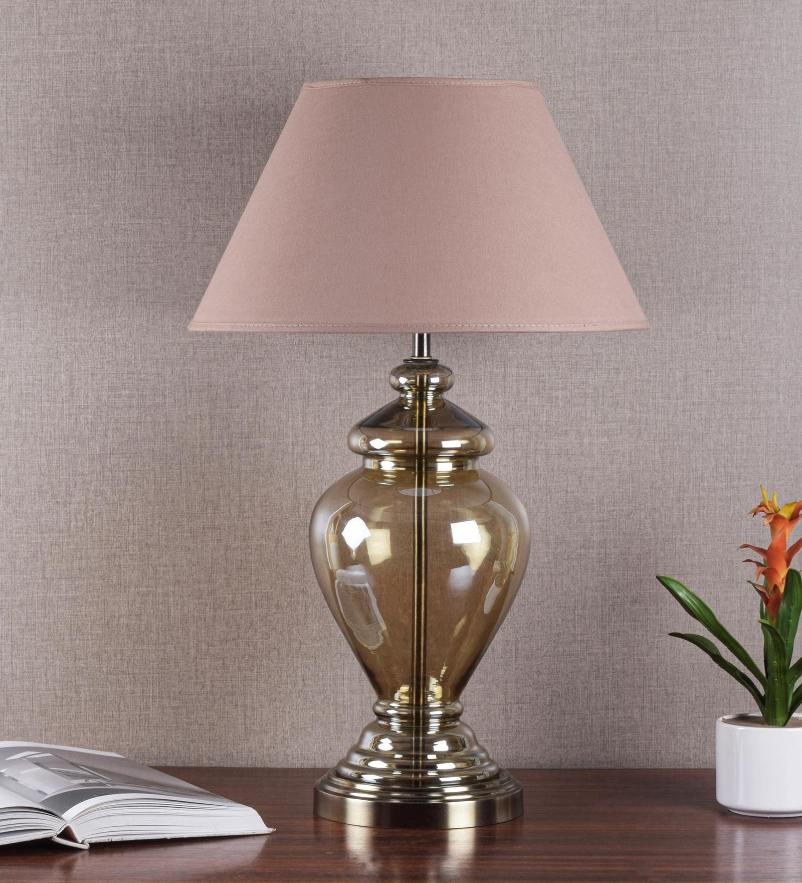 Enchant your guests with the captivating allure of the Syracuse Champagne Glass Table Lamp. Crafted with utmost expertise, this extraordinary piece boasts a lustrous glass base that reflects an air of sophistication. Its detailed craftsmanship and glistening champagne hue create a striking statement, while the beige cotton shade elegantly enhances the lamp’s radiance. Embrace the epitome of luxury with this stunning glass table lamp, an exquisite addition to any refined interior setting.