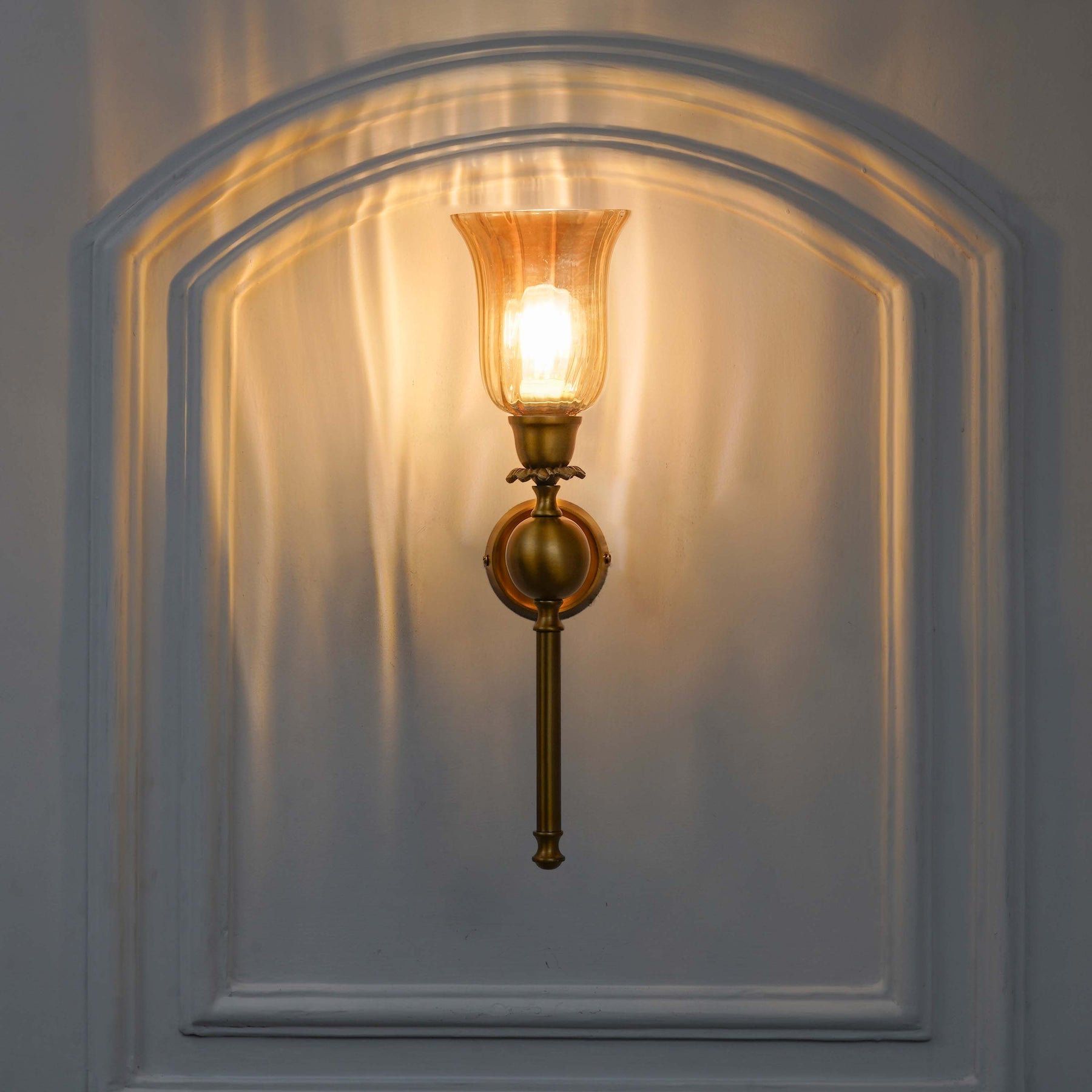 Add a touch of warmth and elegance to your interiors with the ABBIE Single Light Wall Fitting. Crafted with a durable antique brass finish metal body and paired with a rich amber glass shade, this fixture creates a cozy, ambient glow that enhances any living space. Its timeless design makes it a versatile choice for living rooms, bedrooms, hallways, or dining areas, blending seamlessly with both classic and contemporary décor styles. The amber glass adds a subtle golden hue, bringing character and charm to your walls.