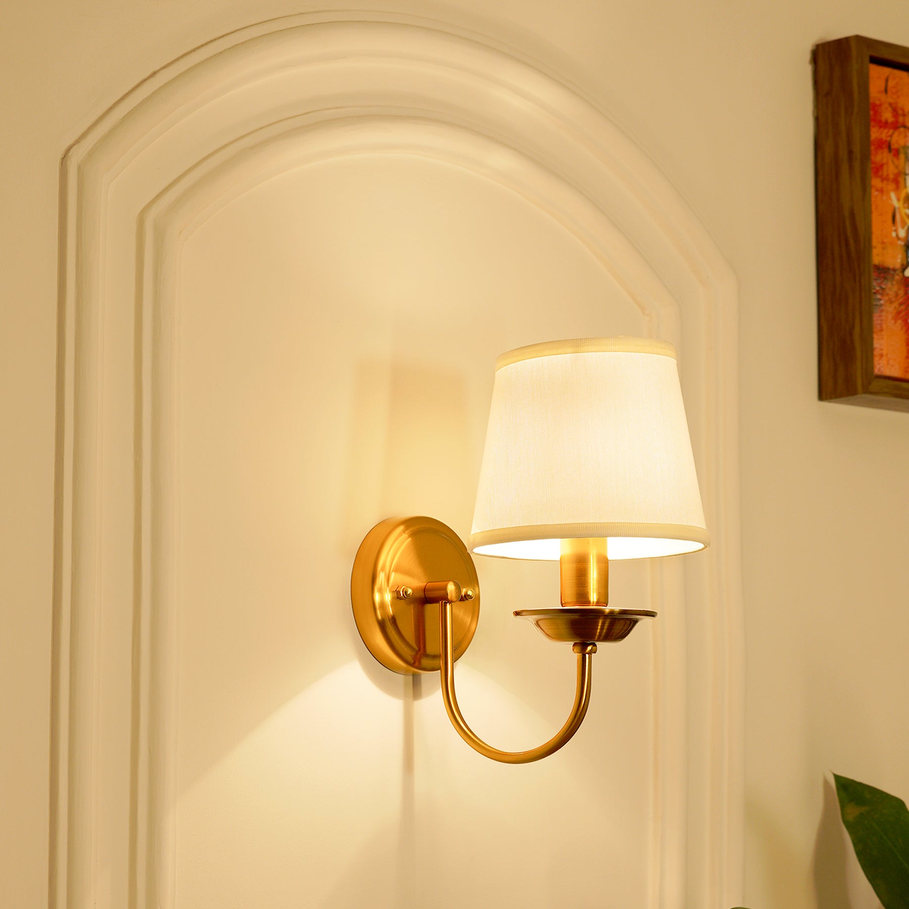 Add a modern touch and a warm glow to any corner of your home, without taking up floor space, with this one-light armed sconce. Crafted from metal & glass in a Antique Brass finish, this fixture features a backplate and an angular arm for a streamlined look.