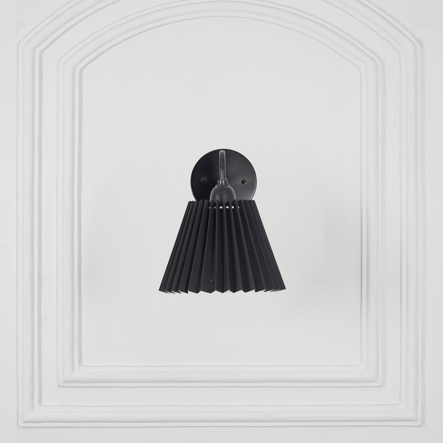 The POSSIO Single-Light Wall Fitting is a perfect blend of elegance and modern design, crafted to complement any contemporary interior. Featuring a sleek black metal finish paired with a matching black fabric shade, this fixture adds a sophisticated touch to your home décor. Its minimalist yet stylish appearance makes it ideal for bedrooms, living rooms, hallways, or any accent wall that needs warm and focused lighting.