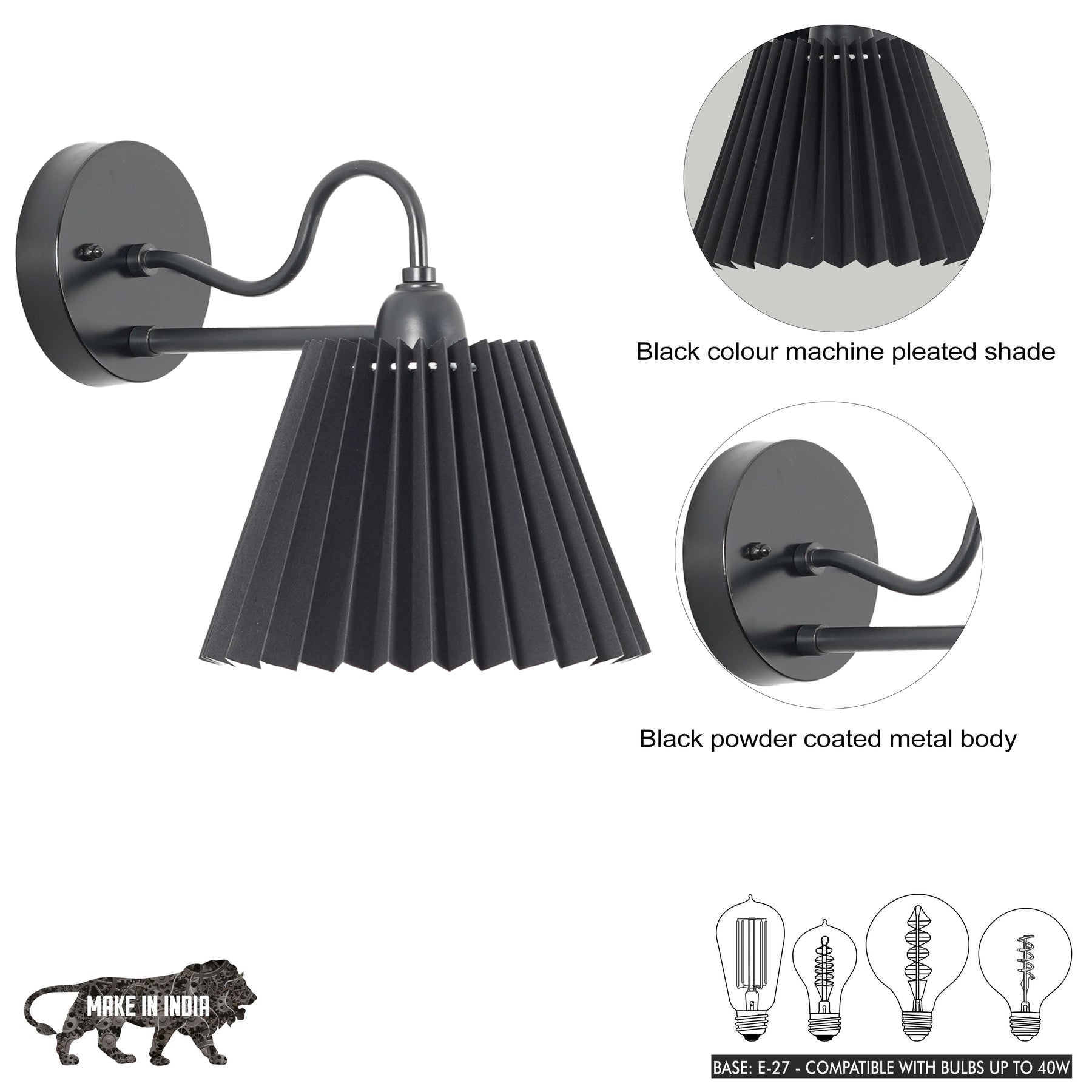 POSSIO Single-Light Wall Fitting with Black Shade and Black Finish Metal