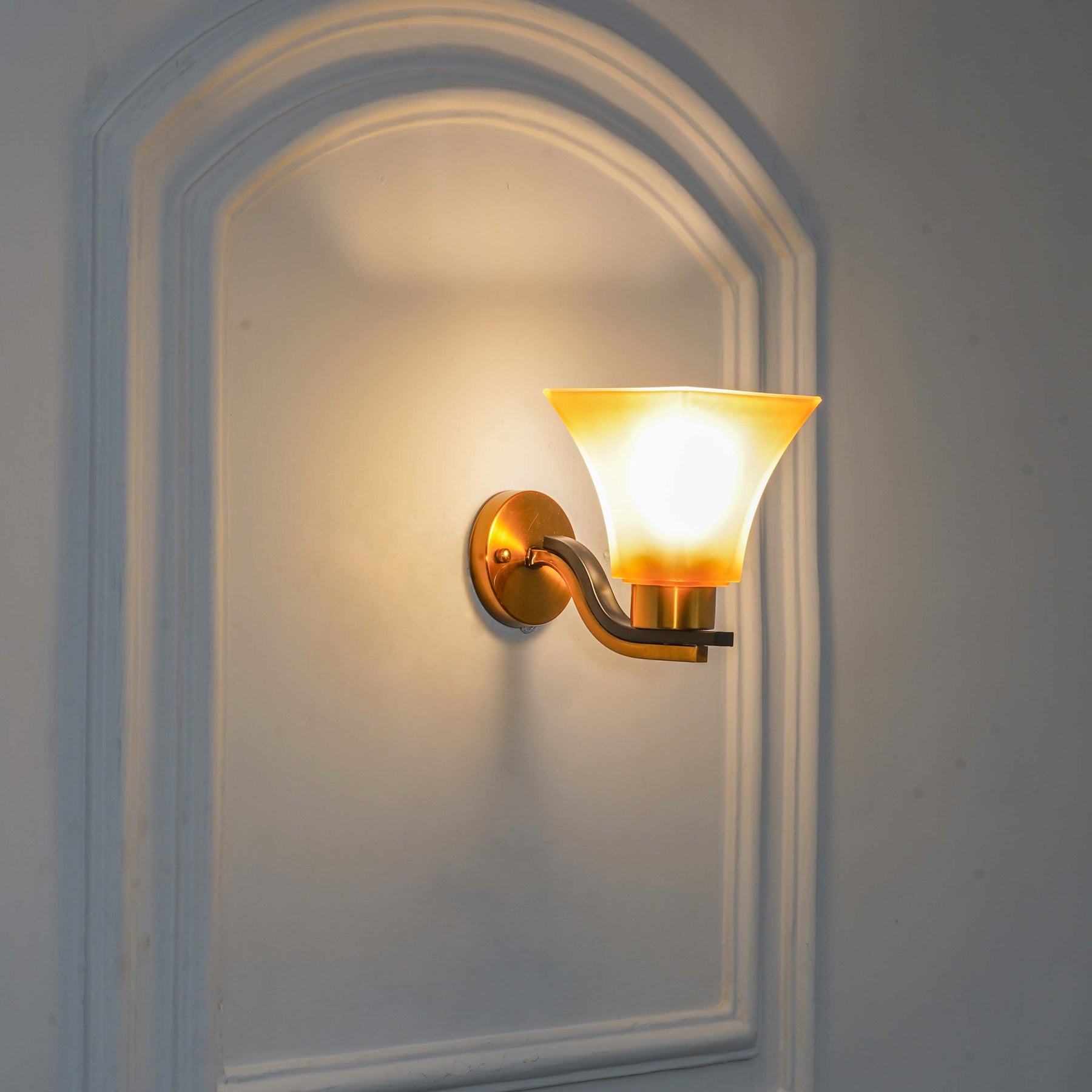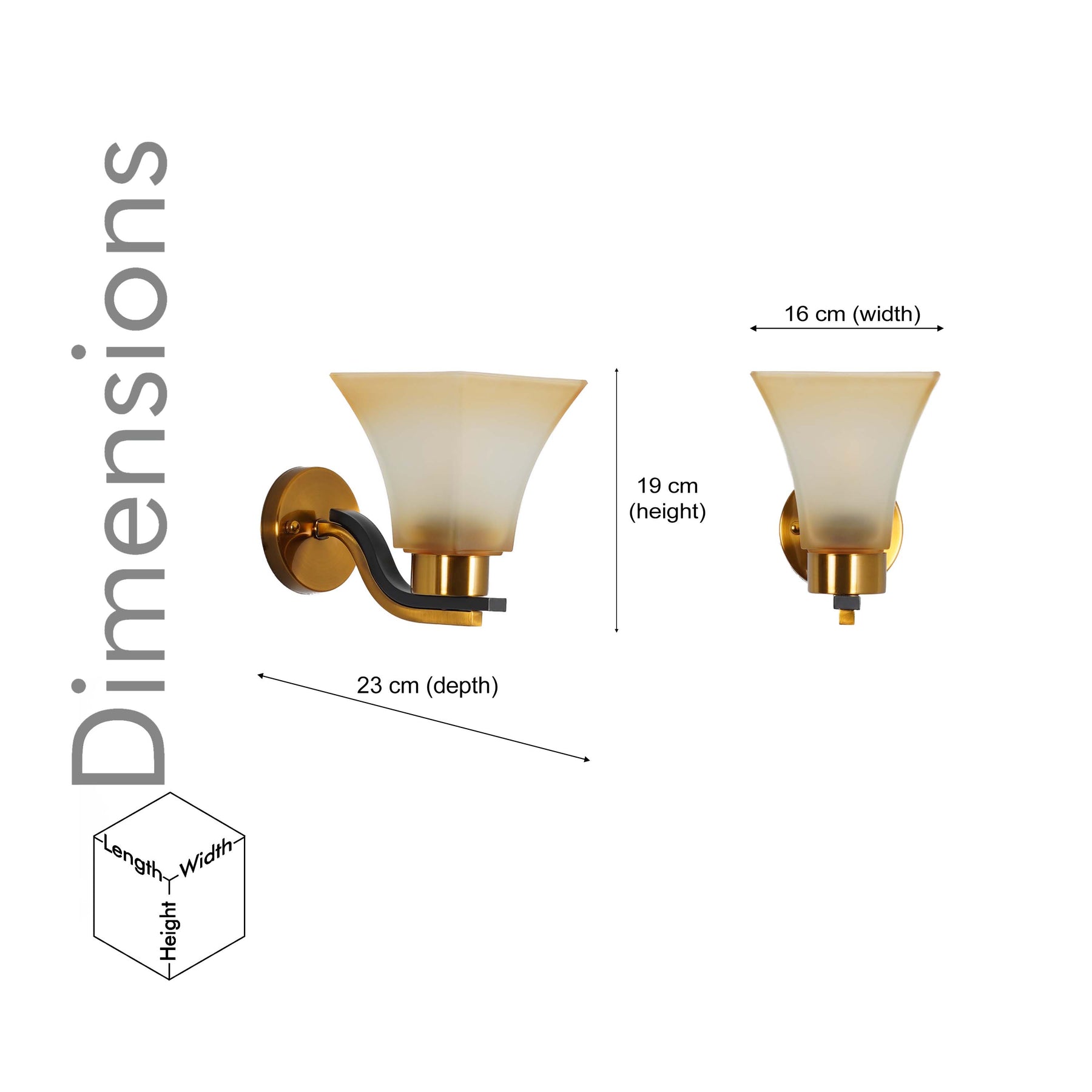 SUTTON Single Light Wall Fitting In Brass And Black Finish Metal With White Glass