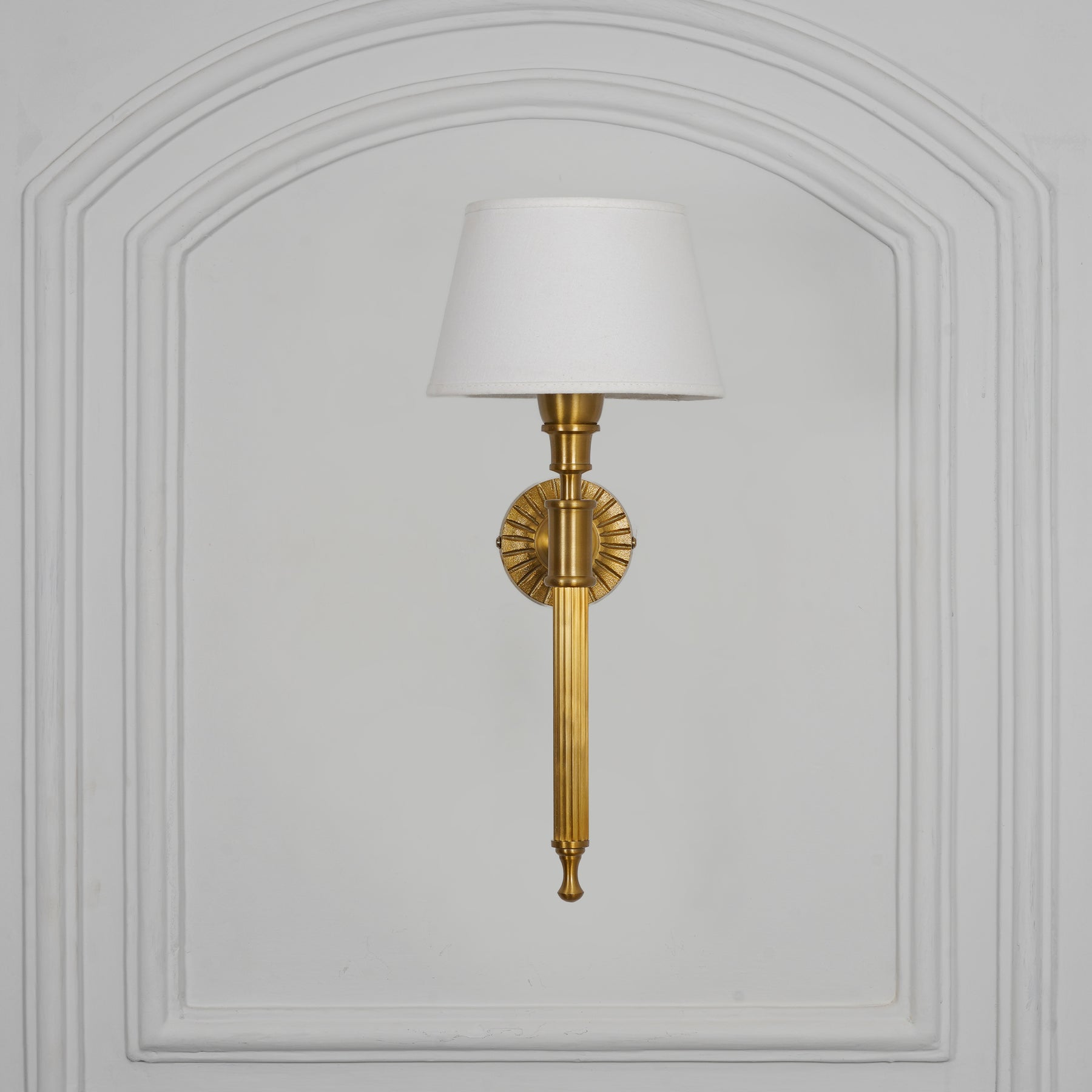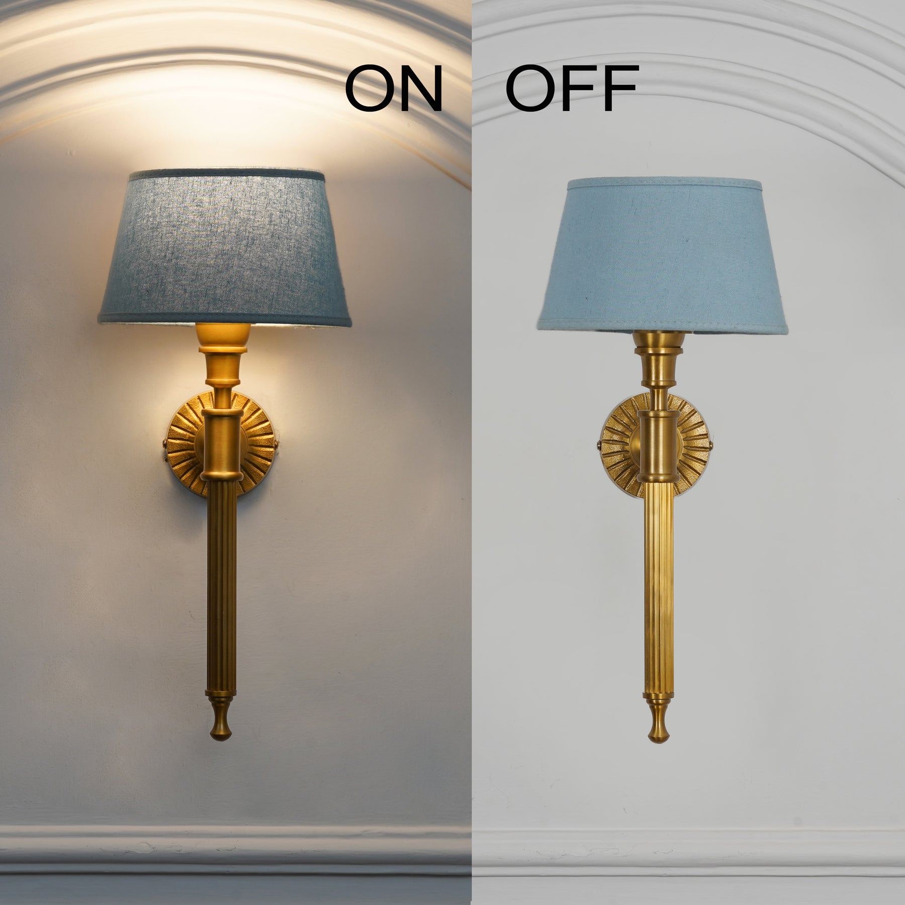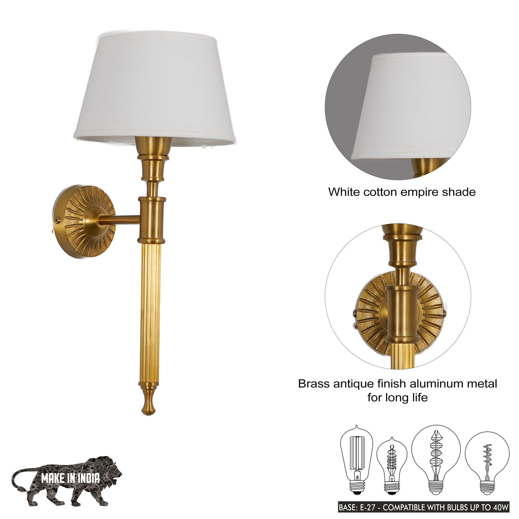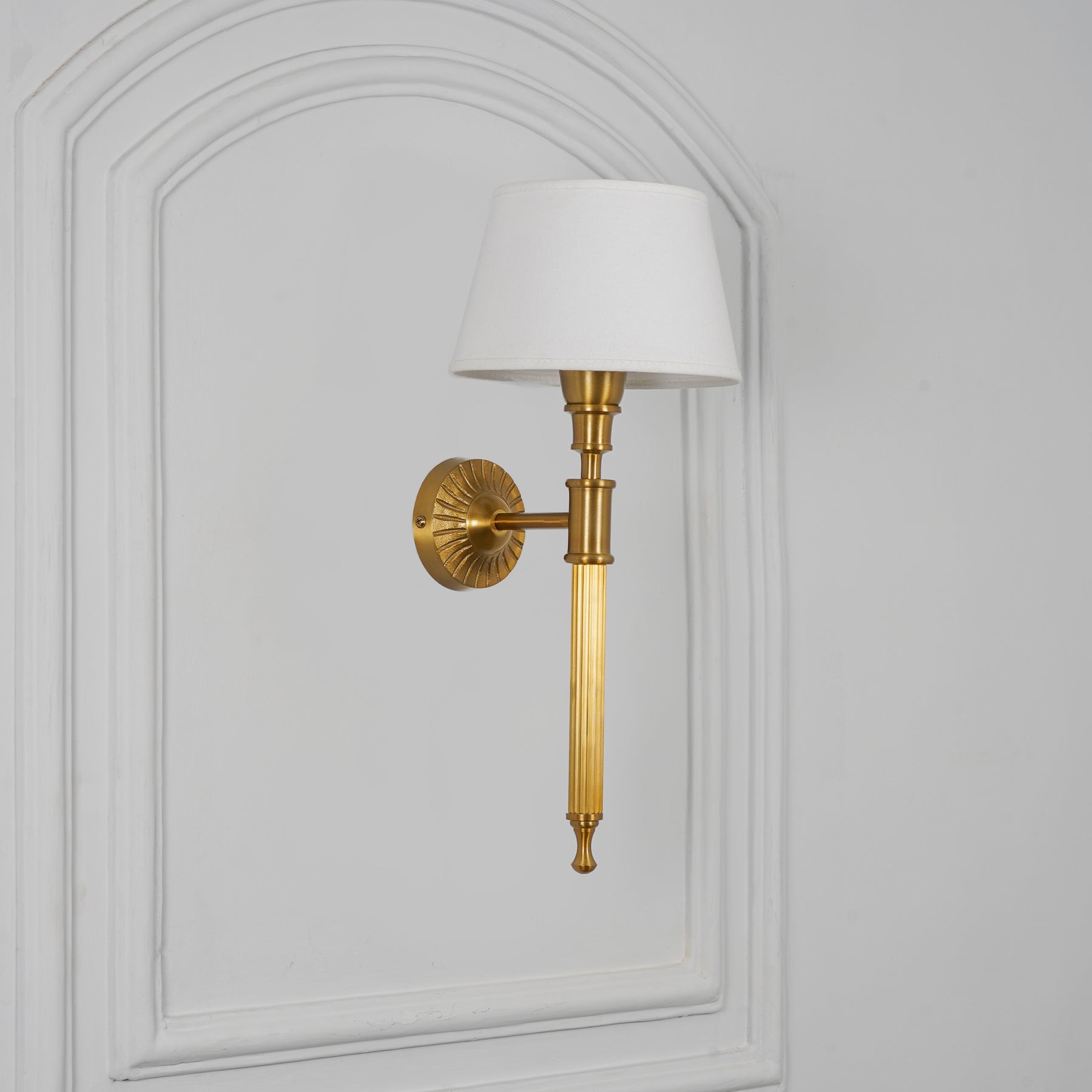 The PARKER Single Light Wall Fitting is a stylish blend of timeless elegance and modern simplicity. Designed with a premium antique brass finish metal body, it is paired with a classic cotton shade that diffuses light softly, creating a warm and inviting atmosphere. Perfect for bedrooms, living rooms, hallways, or study areas, this wall light enhances your décor while offering practical illumination. The understated yet sophisticated design makes it suitable for both contemporary and traditional interiors.