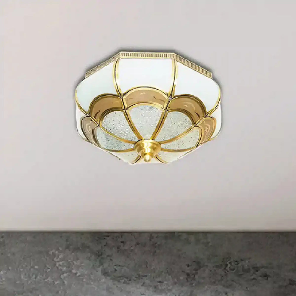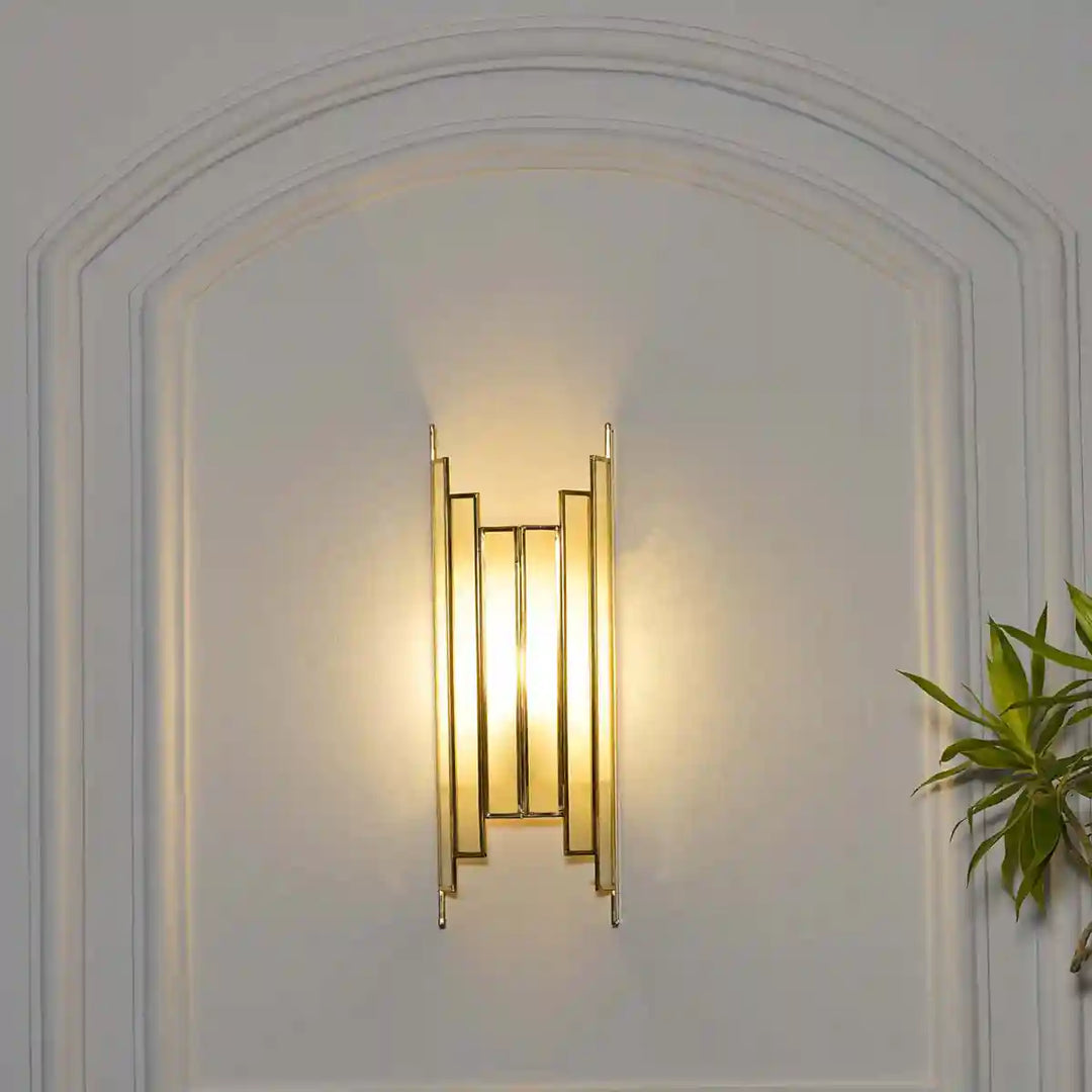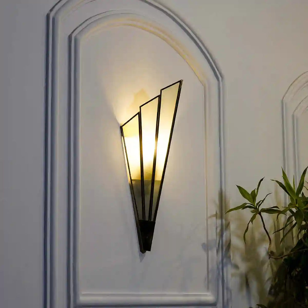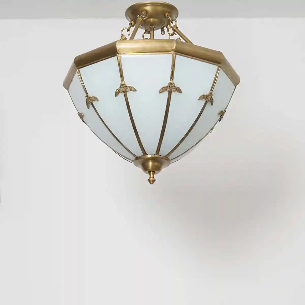 Crafted to perfection, this exquisite fixture combines striking glass panels with a sturdy brass frame for an effortlessly chic look. Radiating warm and inviting light, it creates an atmosphere that exudes professionalism and sophistication.