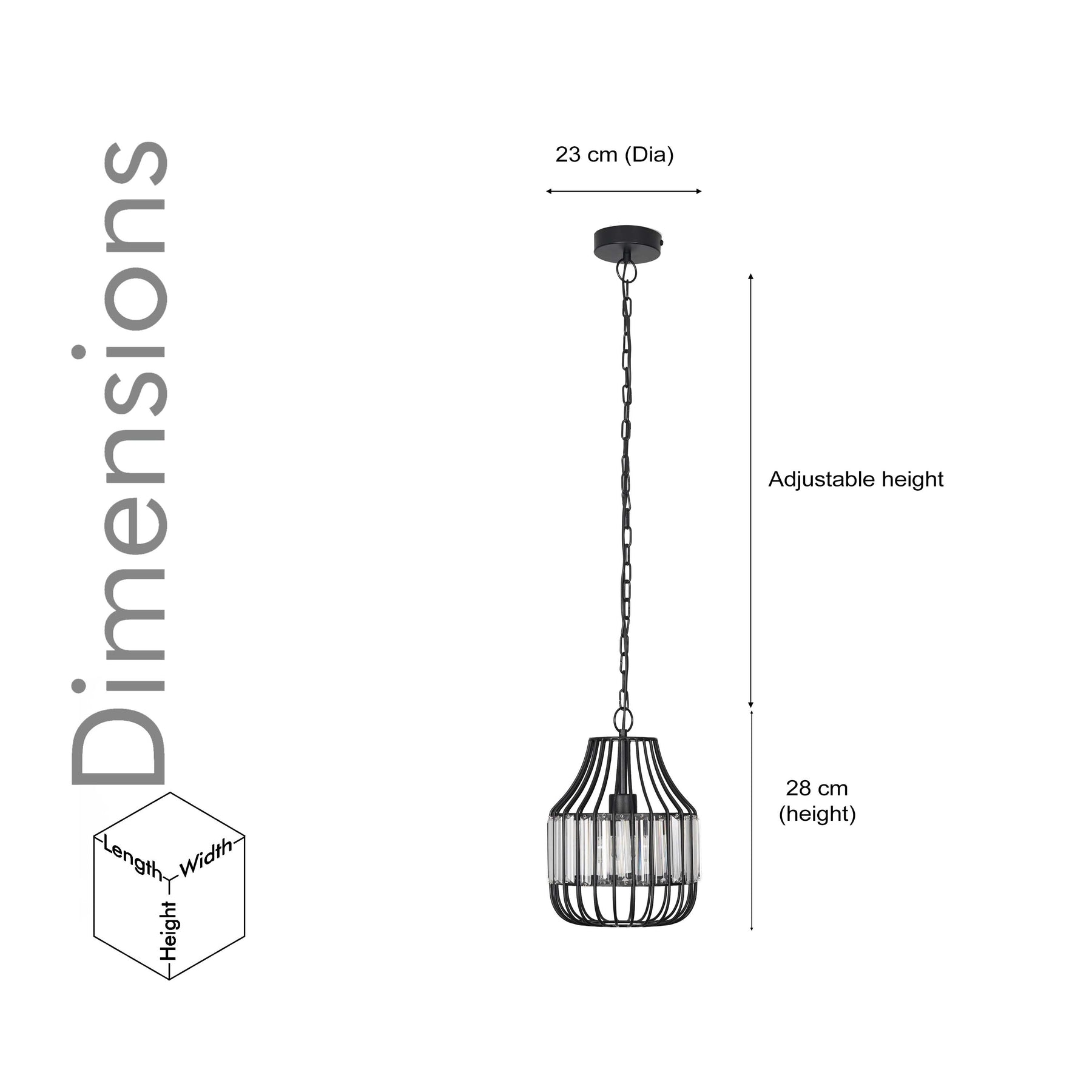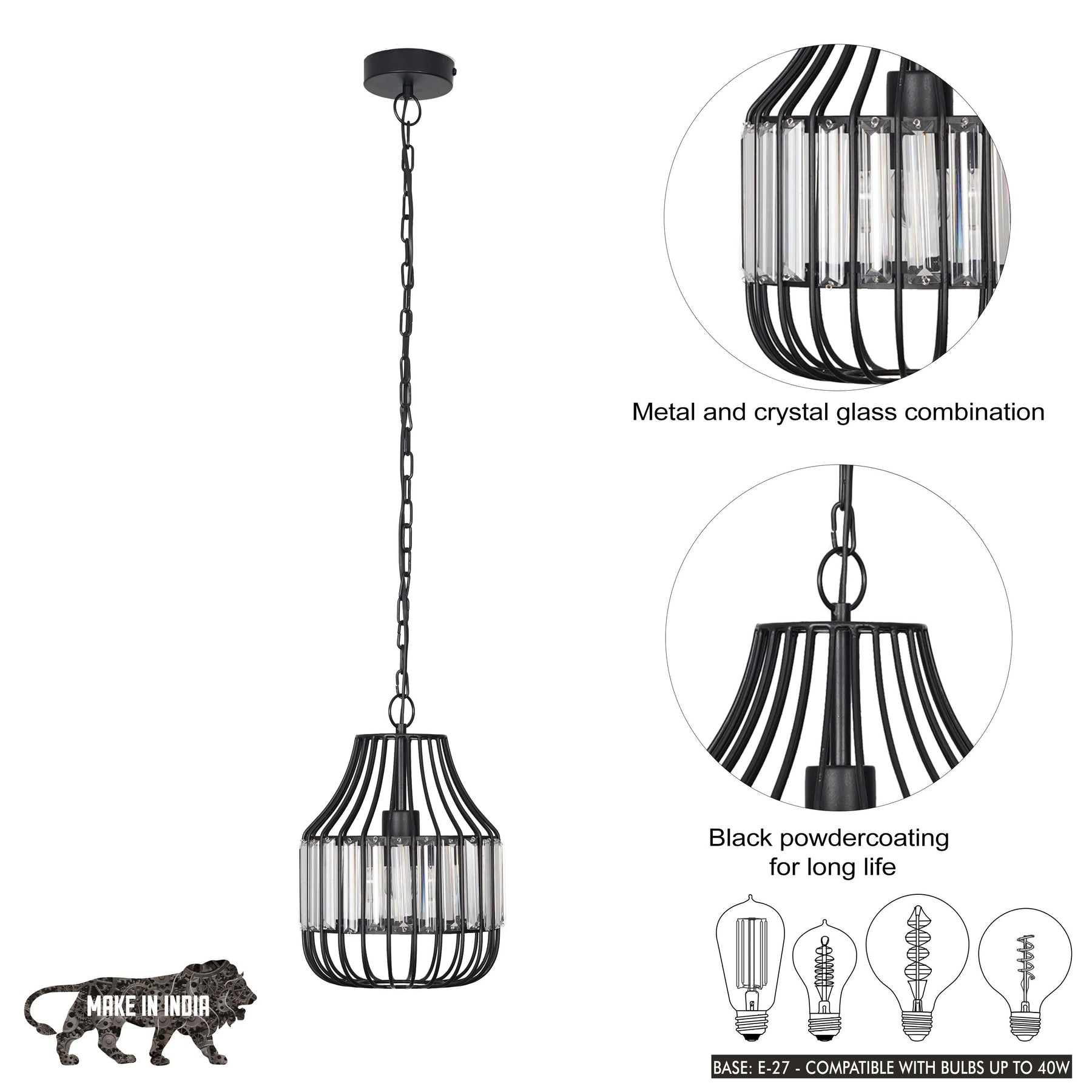 Add a touch of luxury to your interiors with the Tindori Hanging Pendant Light, featuring a stunning clear crystal shade complemented by a sleek black metal frame. This elegant design creates a sparkling illumination that enhances both modern and classic spaces. Perfect for dining areas, living rooms, entryways, or bedrooms, the Tindori pendant light works as a functional light source as well as a decorative statement piece. Built with premium materials, it ensures durability and timeless appeal.
