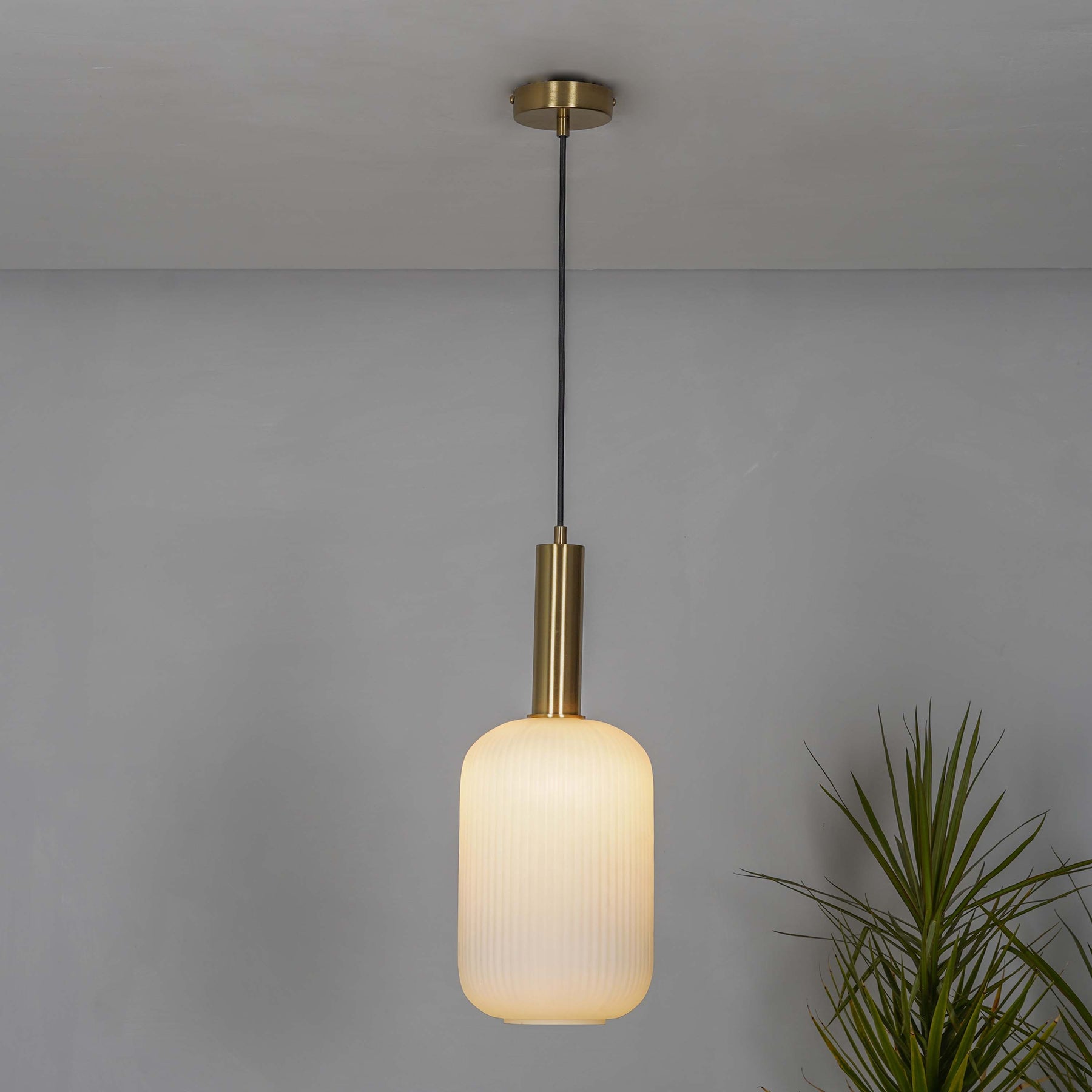 Maloto Amber Luster and Brass Hanging Light Complement your game room or breakfast nook with this pendant light. This pendant Amber Luster shades and vintage-style bulbs give them a charming retro edge, while their halogen- and LED-compatible design offers modern energy efficiency. Dome-shaped shades deliver focused downlight illumination, making these lights ideal for your table or workspace.