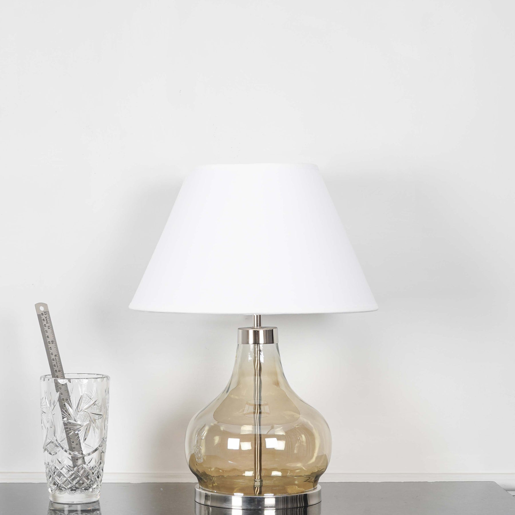 INGRAM Smoke Glass and Metal Table Lamp With Beige Cotton Shade