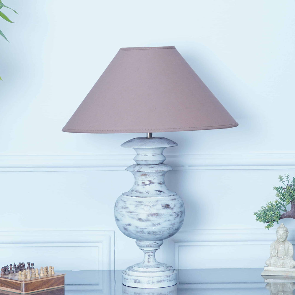 MARASOL Frosted White Wood Table Lamp With Beige Cotton Shade