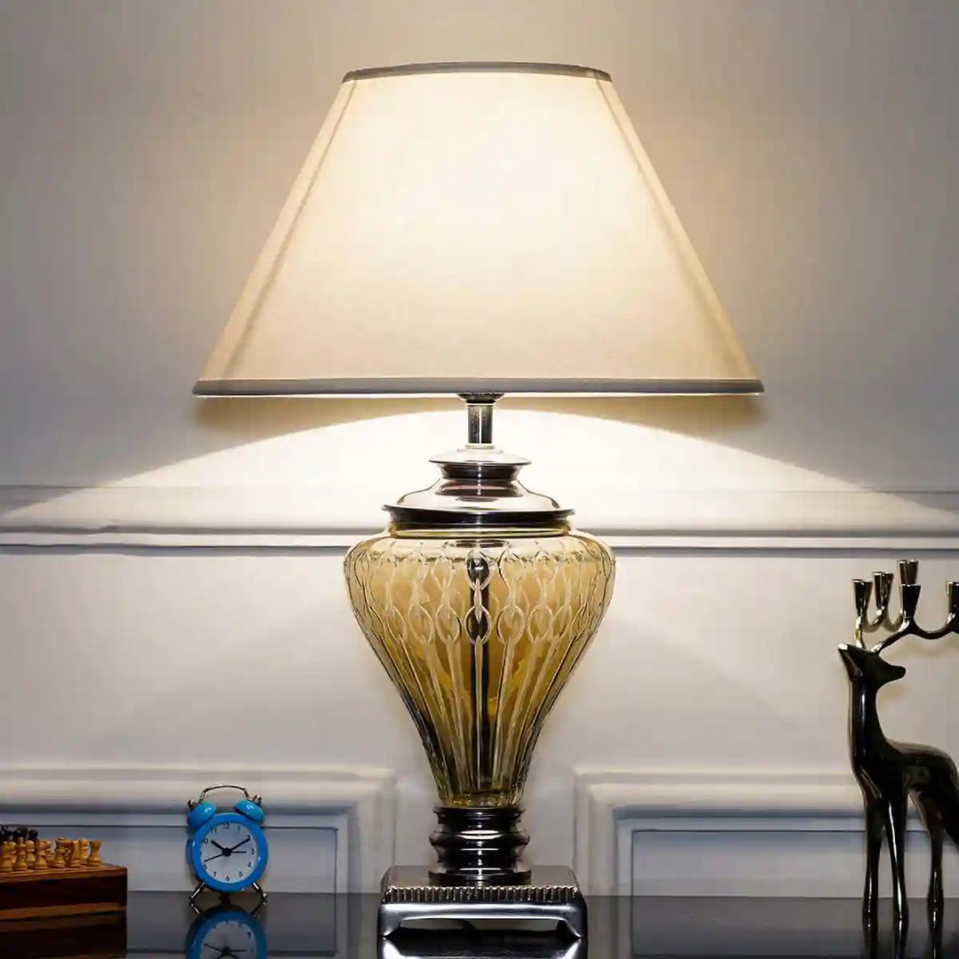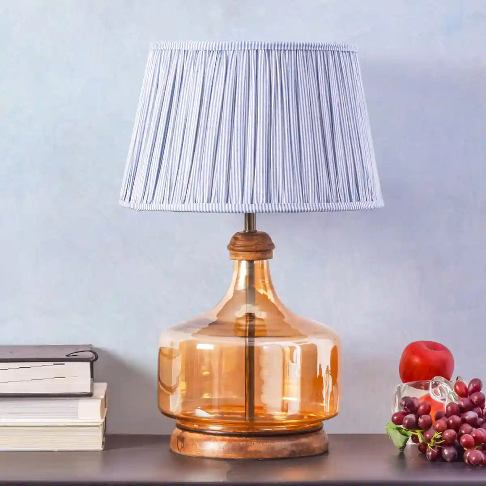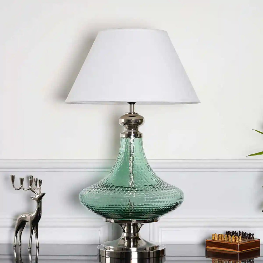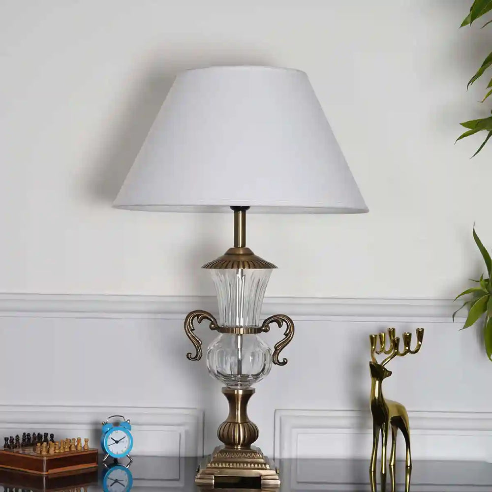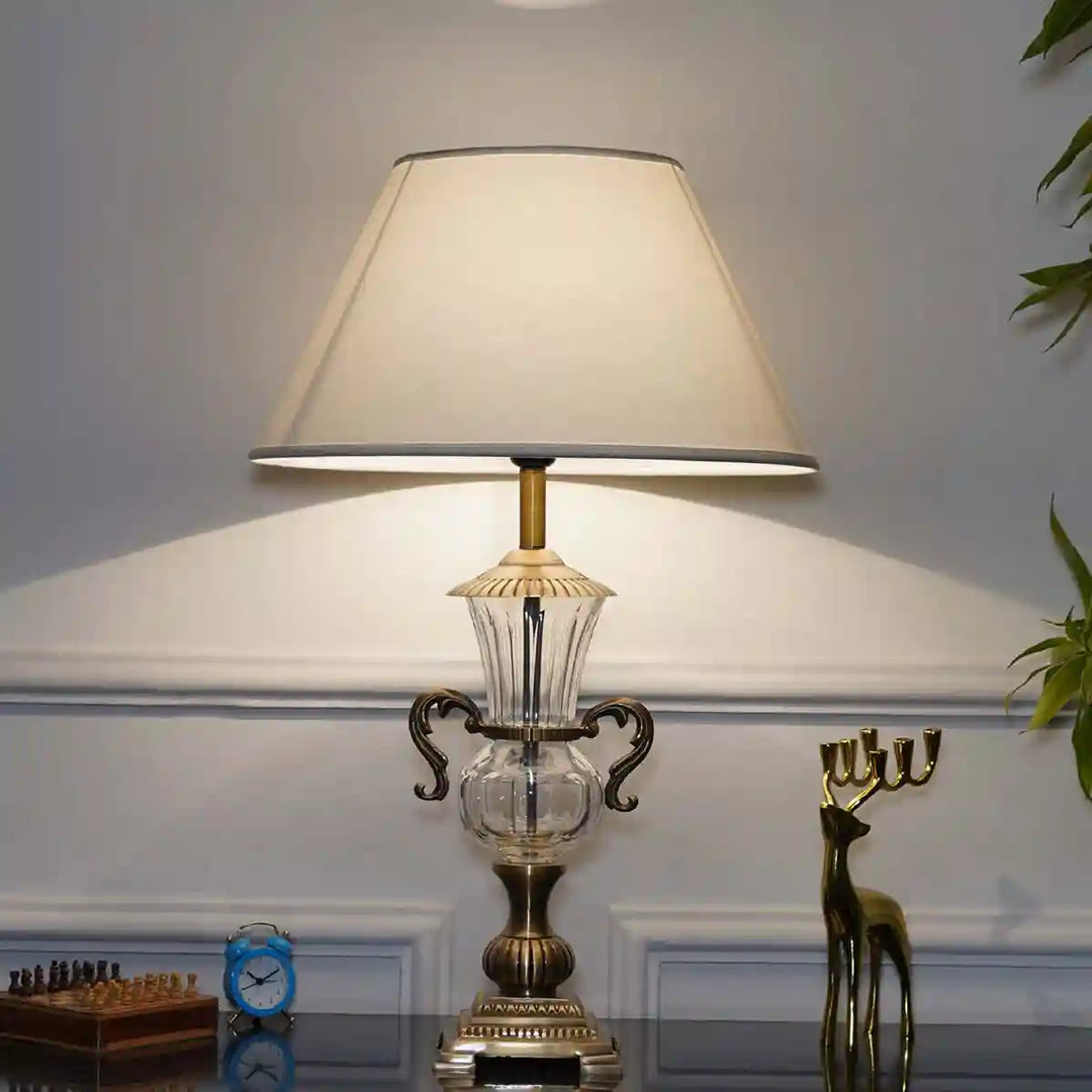 With gentle upkeep, the table lamps do not lose their charm over the years. Use clean & dry cloth to wipe the piece. Glass can be washed with mild soap water. Do not use an abrasive material or polish over the metal part.