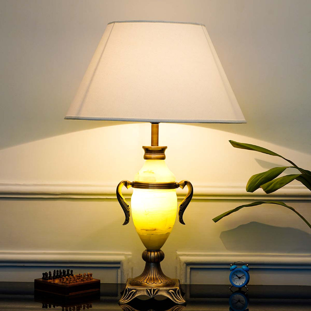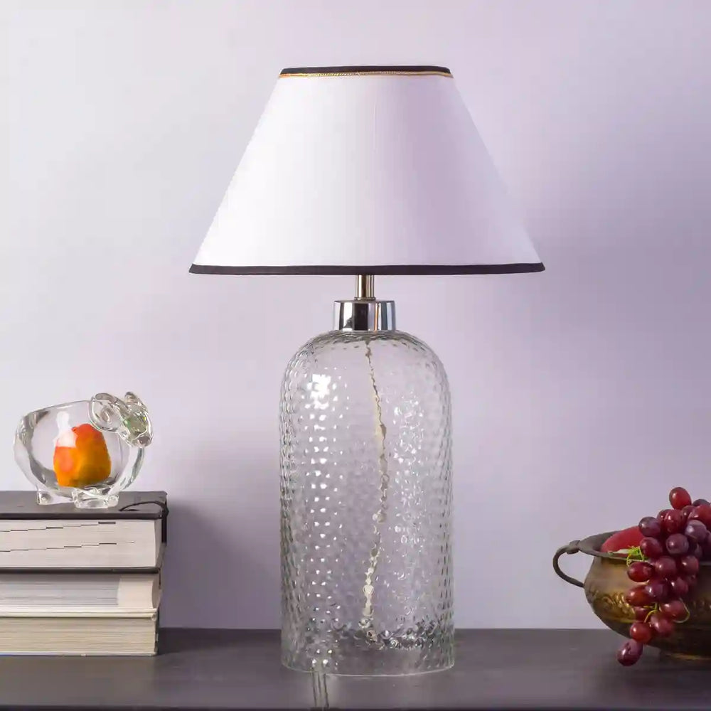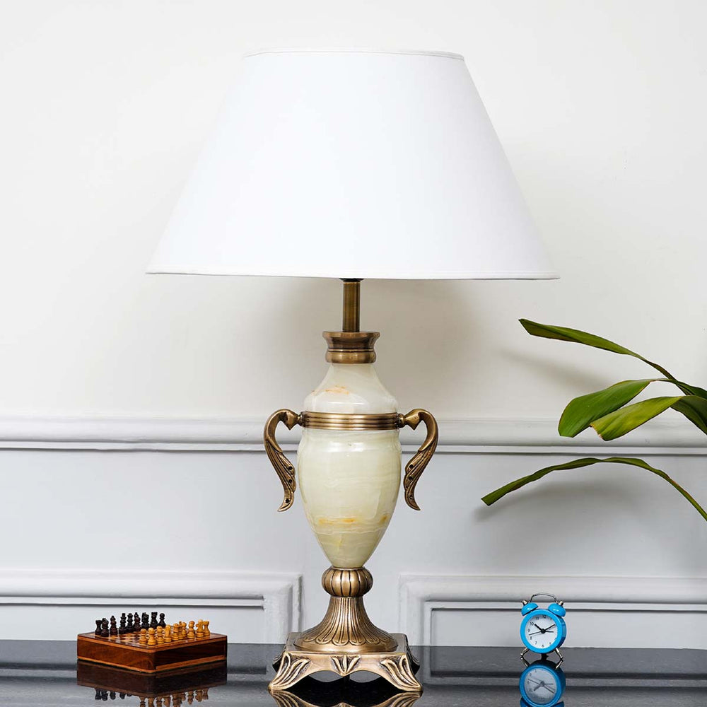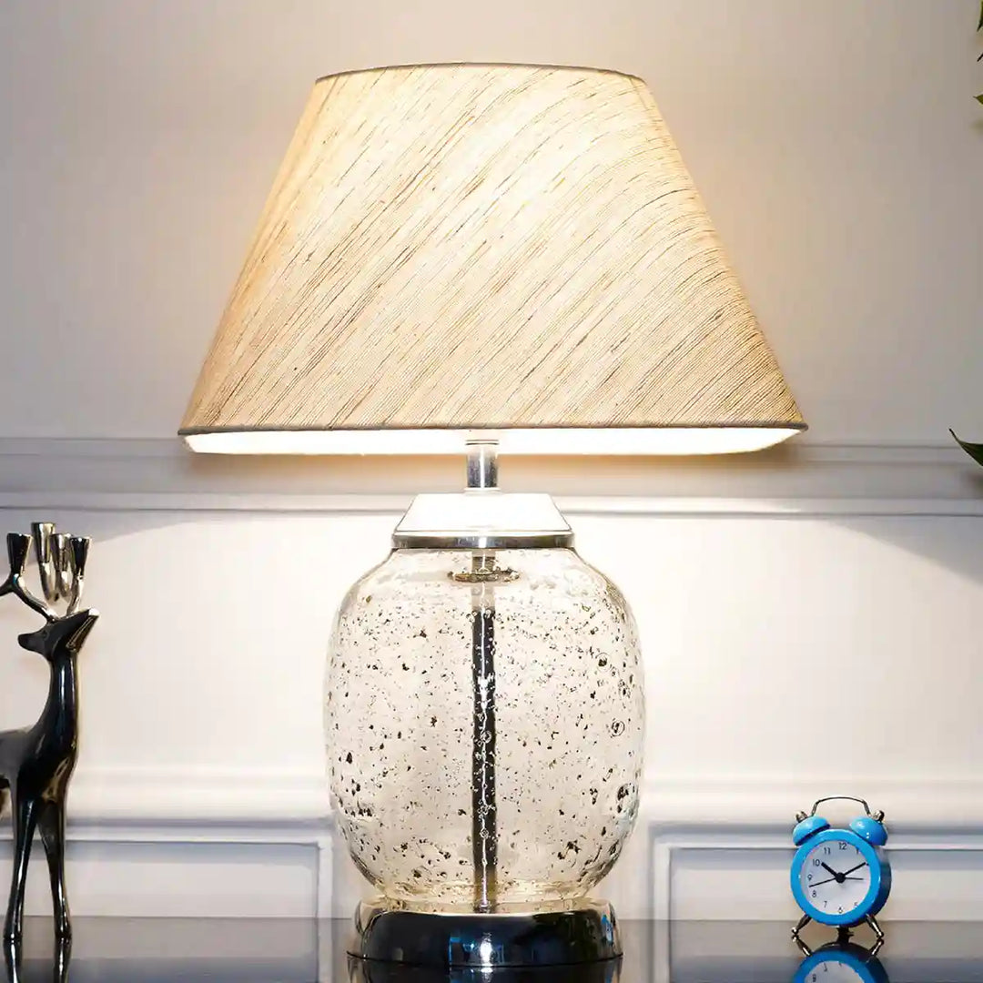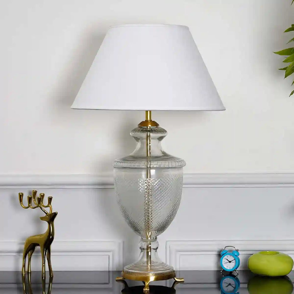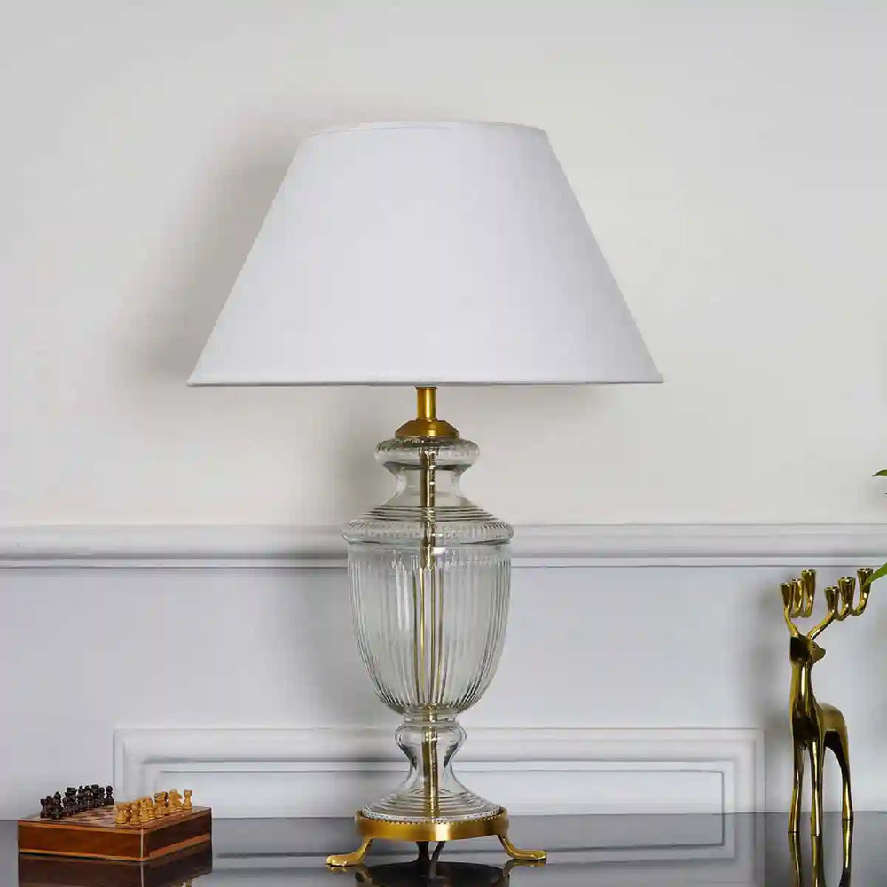 With gentle upkeep, the table lamps do not lose their charm over the years. Use clean & dry cloth to wipe the piece. Glass can be washed with mild soap water. Do not use an abrasive material or polish over the metal part.