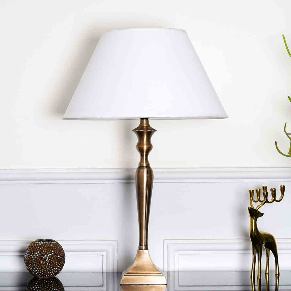 Elevate your interiors with sculptural grace and subtle luxury with the timeless elegance of our pure brass floor lamp with white cotton shade. Crafted from solid brass with a rich, natural gleam and the crisp white cotton shade adds a soft contrast, diffusing light gently for a warm, ambient glow.