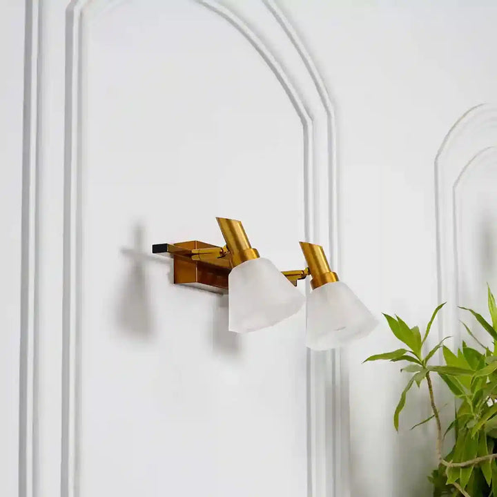 The golden brass finish seamlessly blends with the sleek glass shades, casting a warm and inviting glow in any professional setting. Enhance your office or workspace with this statement piece that effortlessly combines style and functionality. Illuminate your success with the Ainsley 2 Light Brass and Glass Wall Lamp – it’s an investment in refined craftsmanship that will leave a lasting impression on clients and colleagues alike.