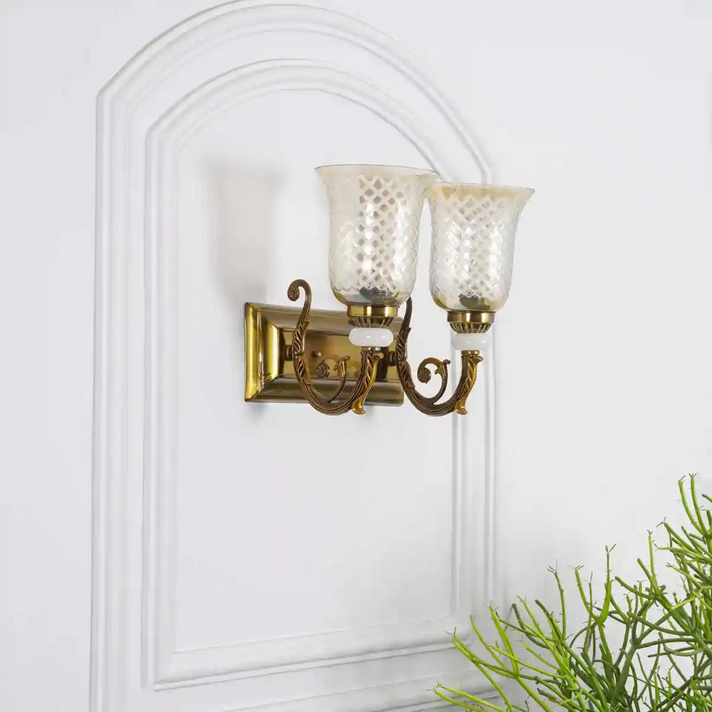 Featuring a polished brass finish and two elegant arms that radiate light in multiple directions. This exclusive lighting fixture exudes a confident aura that effortlessly elevates any professional setting.