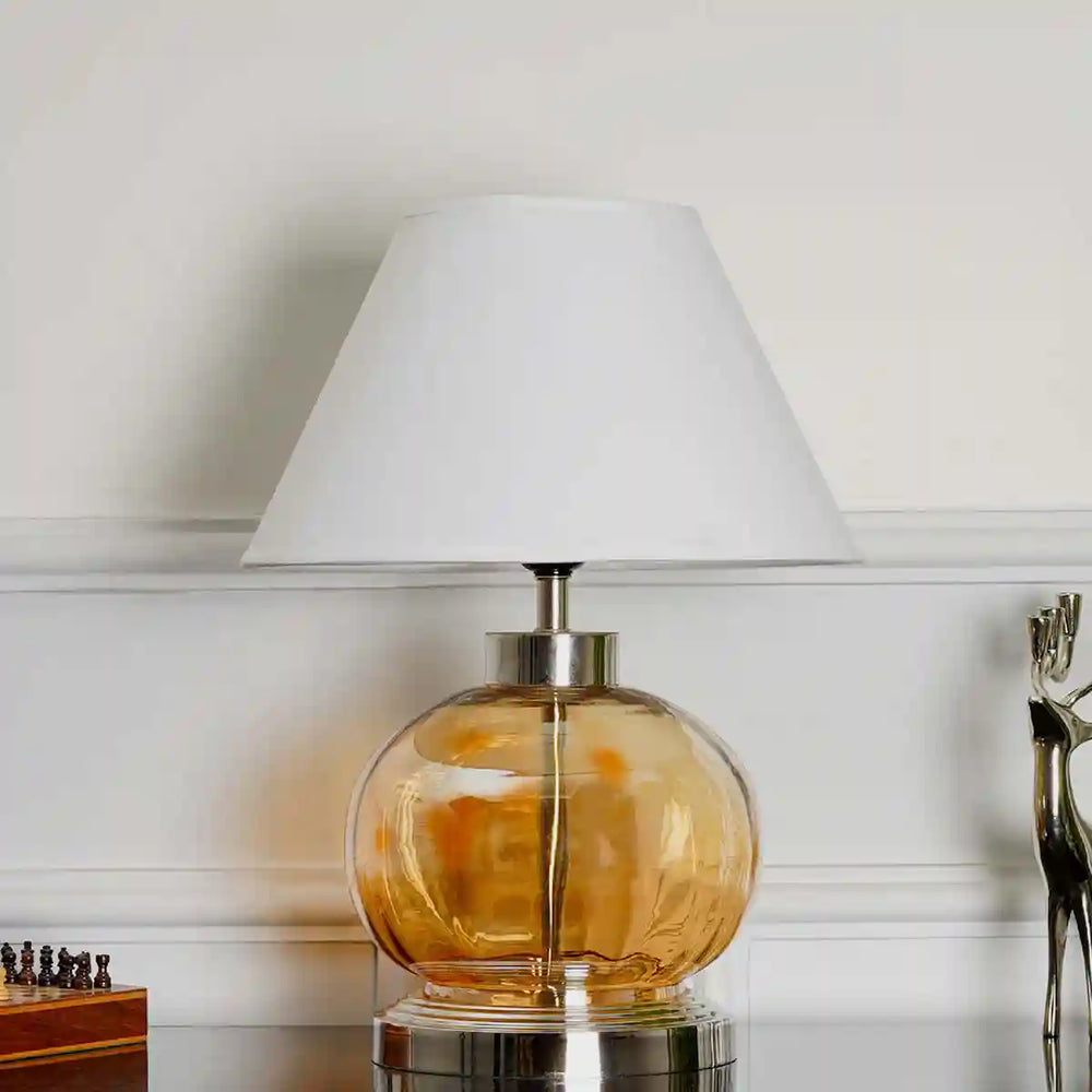 OPALINE Globe Amber and Nickel Finish Table Lamp With White Cotton Shade